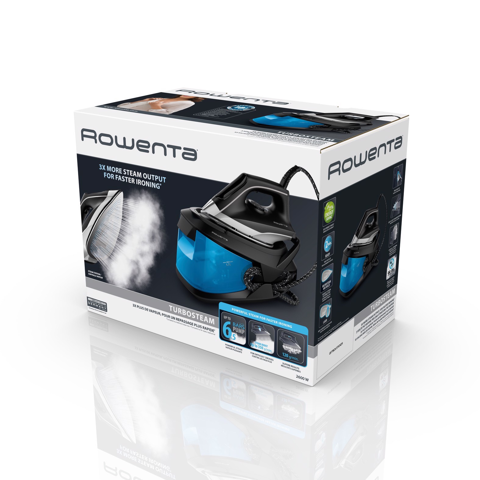 Rowenta Turbosteam è stato progettato per soddisfare anche le esigenze di stiratura più estreme, per una potenza del vapore eccezionale giorno dopo giorno.