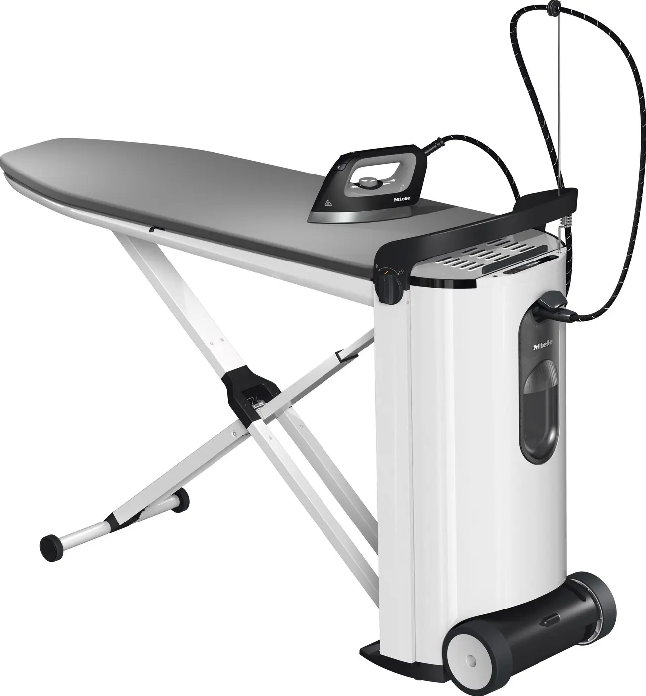 L'asse da stiro aiuta attivamente il processo di stiratura con tre funzioni intelligenti La funzione di soffiaggio garantisce una stiratura particolarmente liscia, mentre quella di aspirazione consente un uso più intenso del vapore. Il tasto vapore sul ferro da stiro attiva la funzione di soffiaggio o di aspirazione e in caso di pausa si spegne in automatico. La funzione Memory salva l'ultima impostazione e riparte utilizzando di nuovo il vapore.