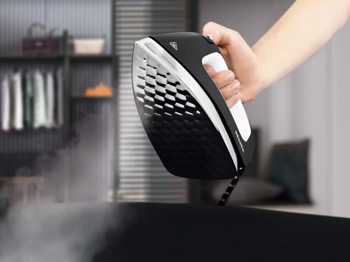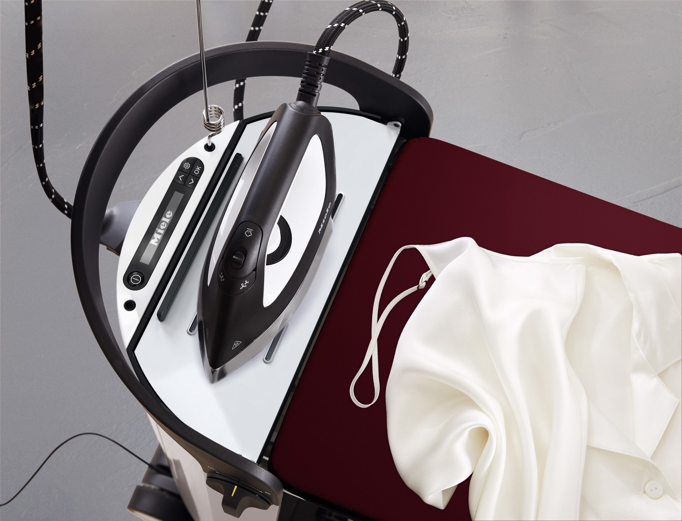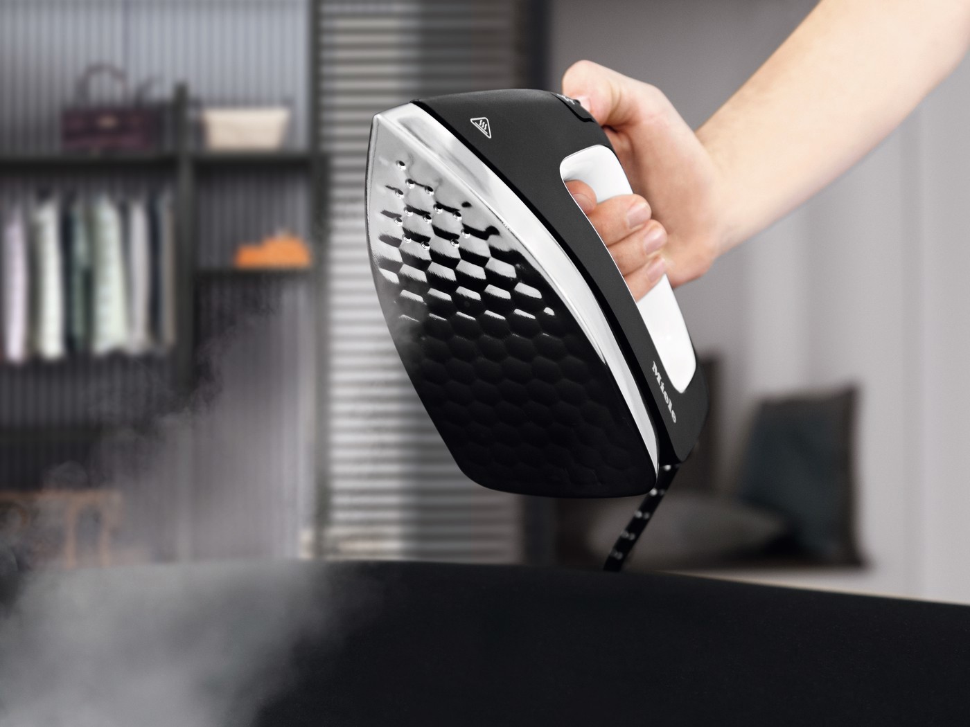 La funzione di aspirazione integrata nell'asse da stiro permette al vapore di penetrare all'interno del tessuto e riduce la formazione di condensa. Inoltre, i capi rimangono fermi sull'asse da stiro e non si spostano durante la stiratura.