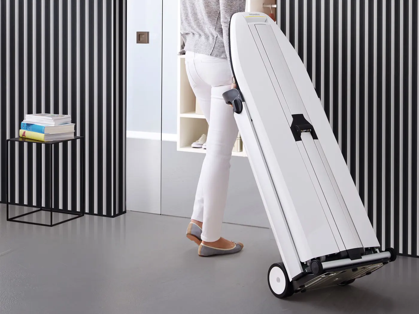 Due maniglie, fatica zero. Grazie al sistema di montaggio in due mosse brevettato l'intera struttura composta da ferro da stiro, generatore di vapore e asse da stiro può essere aperta in poche, semplici mosse. Si sblocca e si sposta verso l'alto in posizione orizzontale, quasi per magia. FashionMaster non soltanto vi aiuta a stirare il vostro bucato, ma protegge anche la vostra schiena.