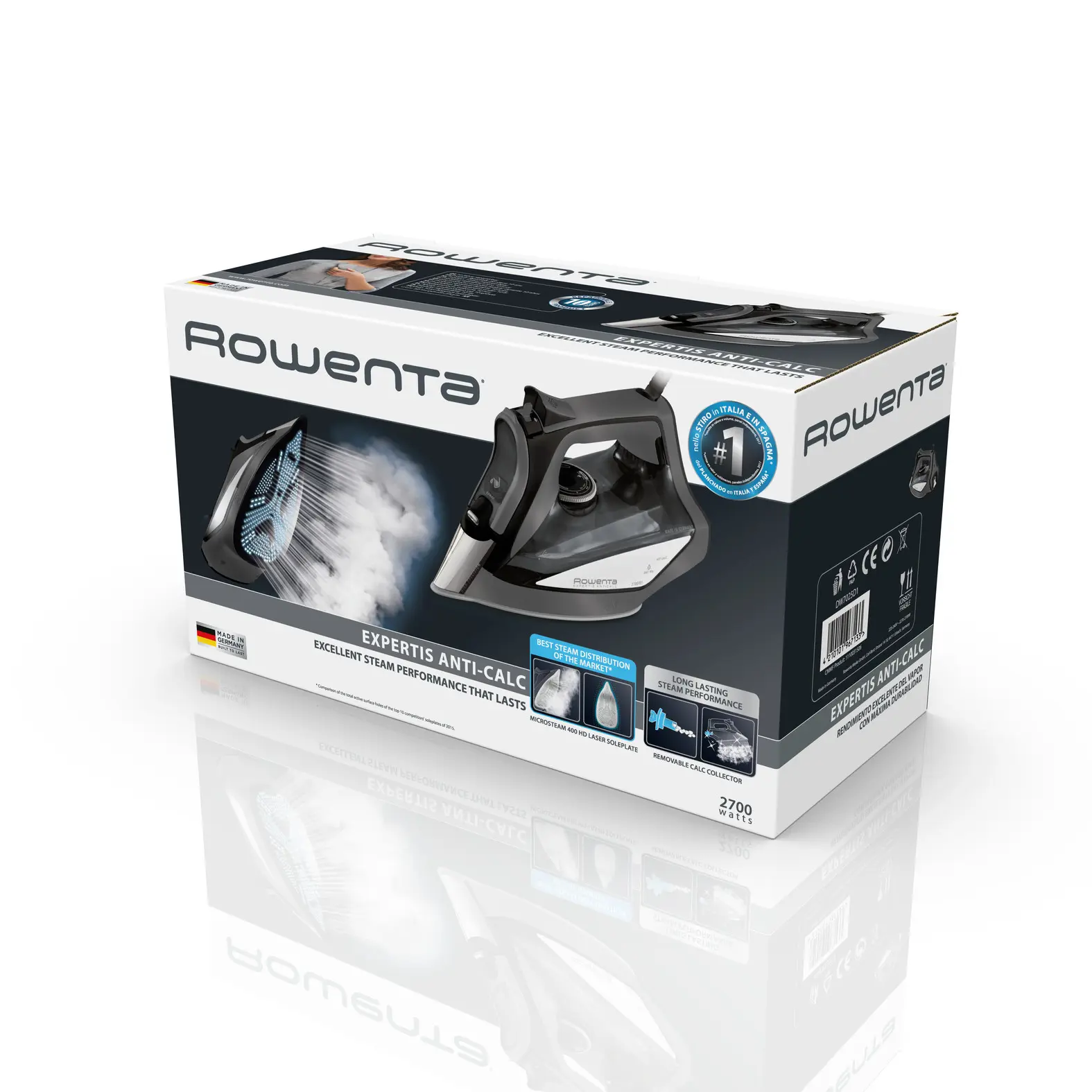Con il ferro da stiro a vapore Expertis Anticalc di Rowenta, goditi prestazioni di lunga durata. Il suo raccoglitore di calcarebrevettato e rimovibile permettefacilità di manutenzione ed efficienza ottimali, mentre la sua nuova piastra Microsteam 400HD rende Expertis Anticalc il ferro migliore sul mercato in termini di distribuzione del vapore*, garantendo sessioni di stiratura ultra veloci. La sua potente erogazione di vapore da45 g/min e ilgetto vapore da180 g/min offrono una stiratura efficace anche sulle pieghe più difficili, una punta di precisione per raggiungere facilmente i dettagi più piccolie un pratico spray. Inoltre, grazie alla maniglia ergonomica e all'ampio serbatoio dell'acqua, le lunghe sessioni di stiratura sono comode e facili senza la necessità di ricariche frequenti. Con Expertis Anticalc di Rowentarisparmitempo e guadagniefficienza!