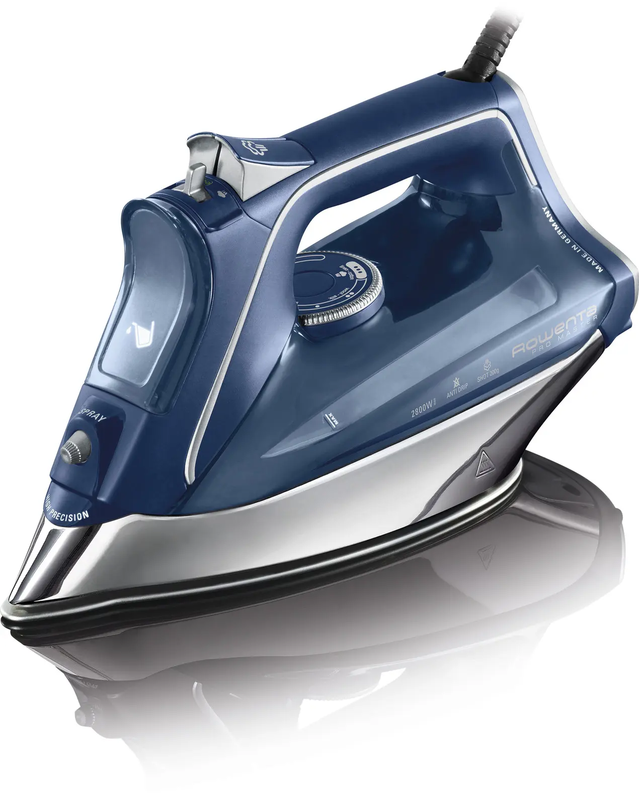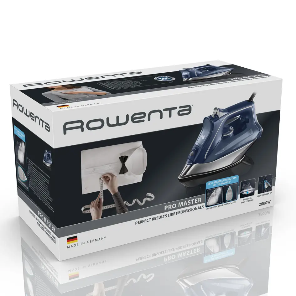 Rowenta PRO MASTER, Ferro da stiro a secco e a vapore, Piastra solare Microsteam 400 HD Laser, 2,5 m, 200 g/min, Blu, 45 g/min