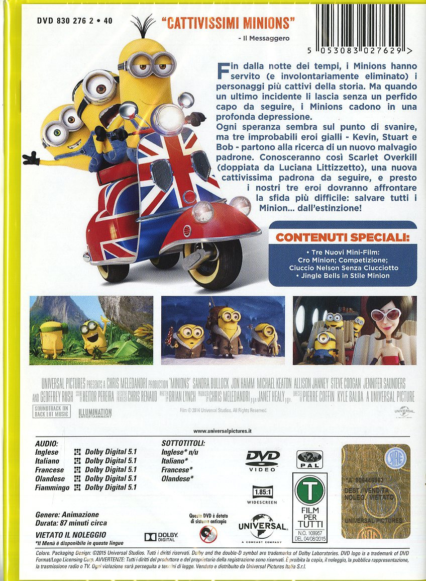 Universal Pictures Minions, DVD, PG, Animation, Adventure, 2D, DUT, Inglese, Francese, ITA, DUT, Inglese, Francese, ITA