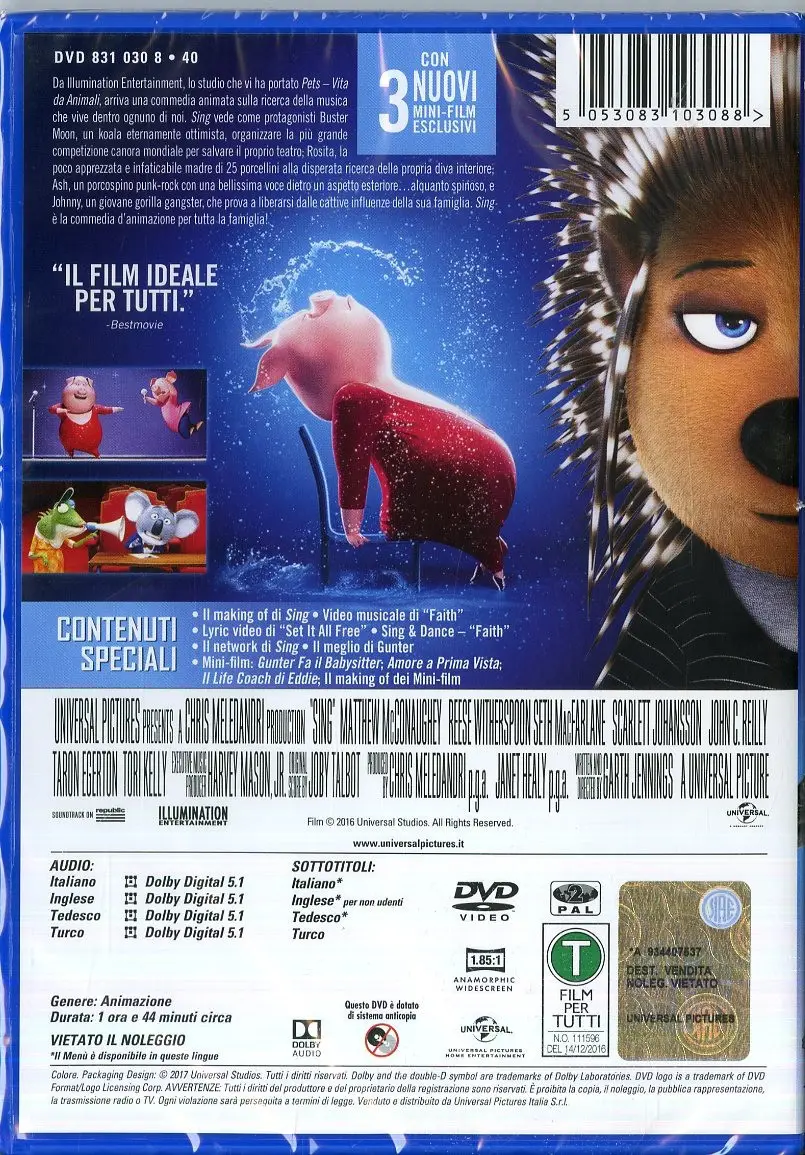 UNIVERSAL Pictures Sing DVD 2D Inglese, ITA, Turco
