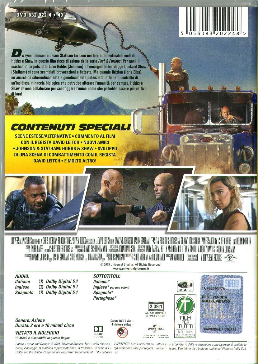 UNIVERSAL Pictures Fast & Furious. Hobbs & Shaw DVD 2D Inglese, ESP, ITA