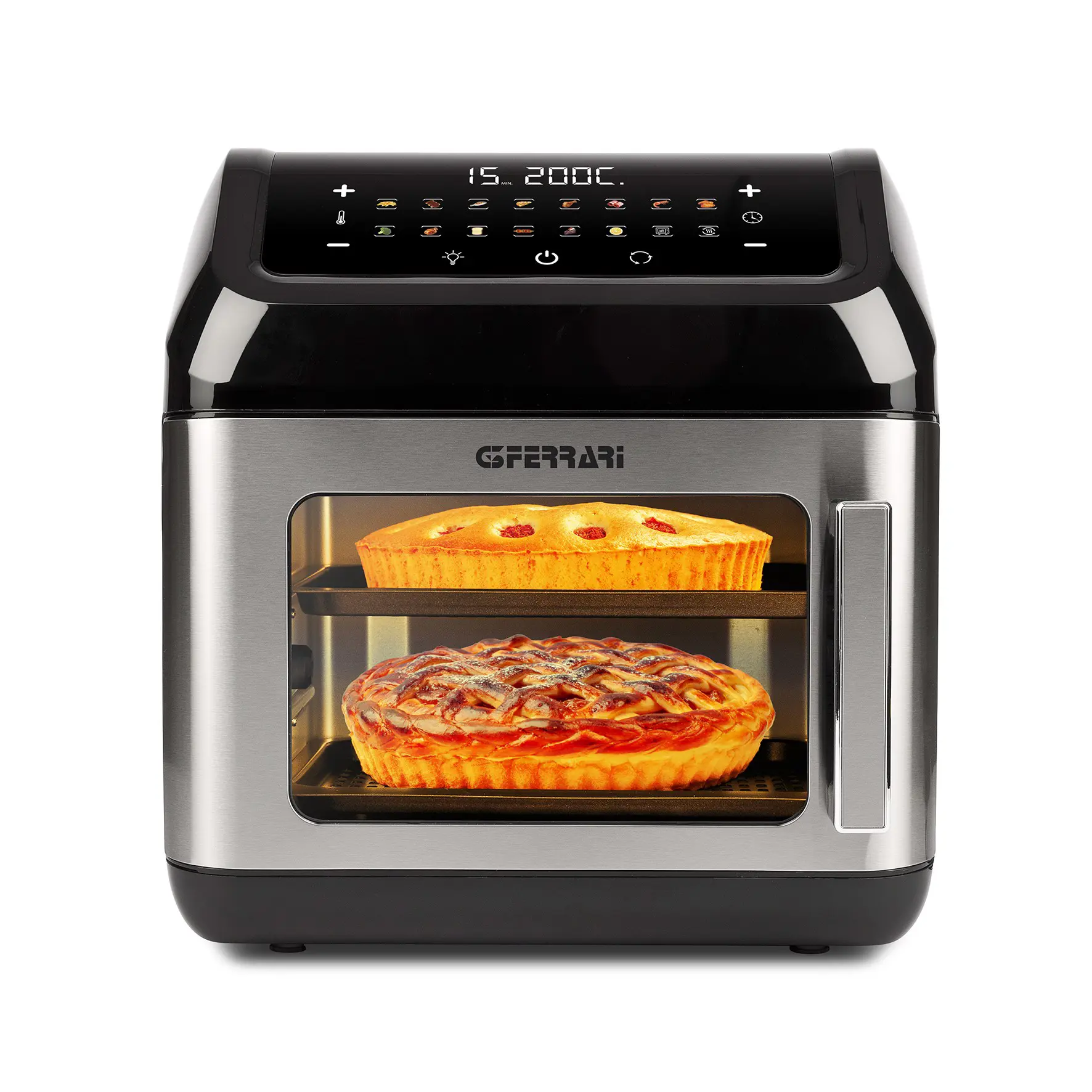 Ma non solo... Friggisano è anche un forno elettrico con molteplici funzioni. Potrai tostare, gratinare, cuocere al forno, arrostire, scongelare, essiccare e riscaldare qualsiasi alimento. Avrai a disposizione un ampio display digitale con comandi soft-touch e 16 programmi preimpostati, la luce interna per controllare lo stato dei cibi ed un’ampia dotazione di accessori: i vassoi antiaderenti per cuocere contemporaneamente su più livelli, l’accessorio per spiedini ed il girarrosto, entrambi rotanti ed in acciaio inox, per cuocere carne, arrosti, spiedini, arrosticini e pollo allo spiedo.