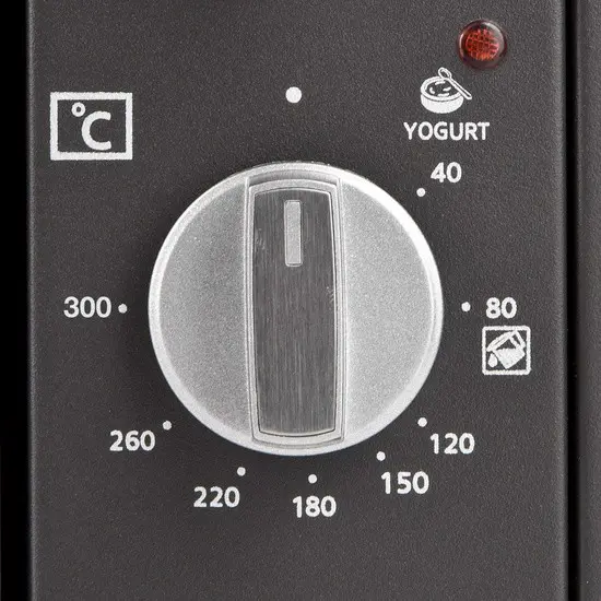 L’accessorio girarrosto e le 6 funzioni di cottura supplementare rendono Grancotto 58 un forno “Full Function”. Un invitante pollo arrosto? Carne allo spiedo croccante al punto giusto? Con il set girarrosto puoi usare il tuo fornetto ventilato per una perfetta cottura alla griglia. Col termostato regolabile da 40° a 300°C puoi realizzare il tipo di cottura che preferisci, senza nulla da invidiare ai maestri del barbecue.