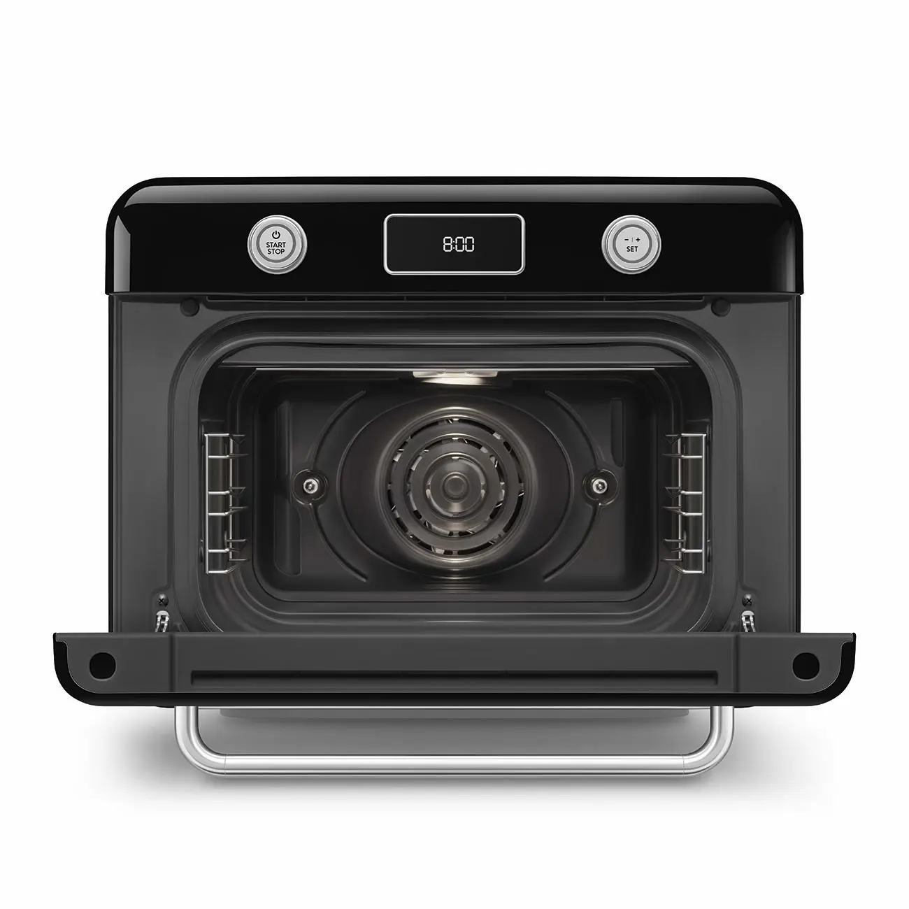 - Funzioni del forno tradizionale: cottura statica, cottura ventilata, grill, base ventilata, frittura ad aria, mantenimento in caldo e scongelamento;