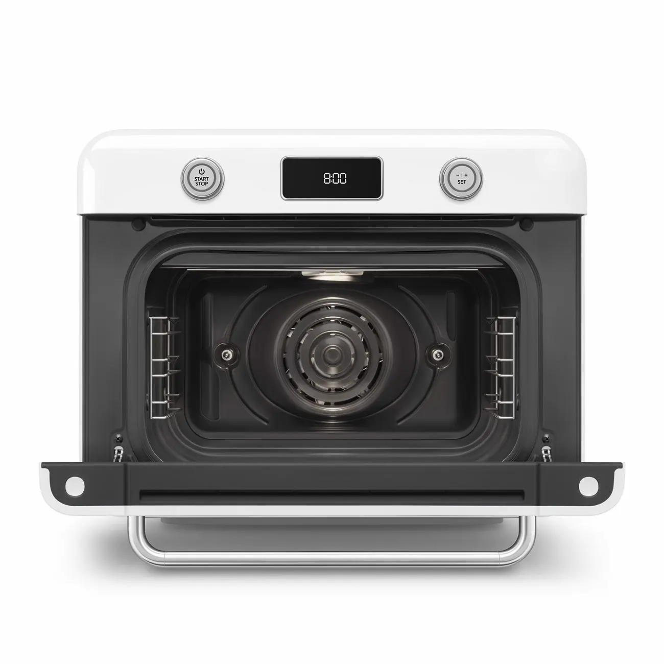 - Funzioni del forno tradizionale: cottura statica, cottura ventilata, grill, base ventilata, frittura ad aria, mantenimento in caldo e scongelamento;