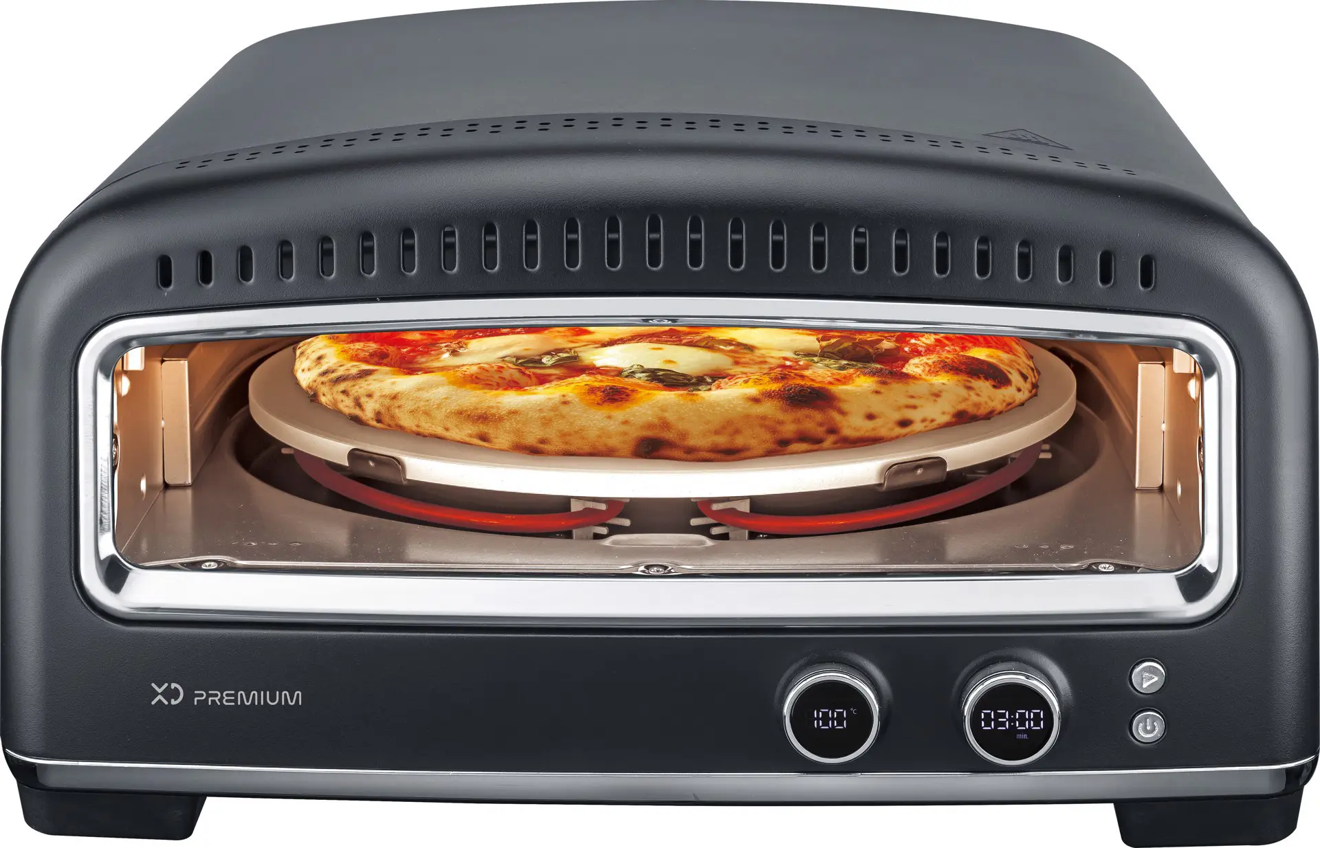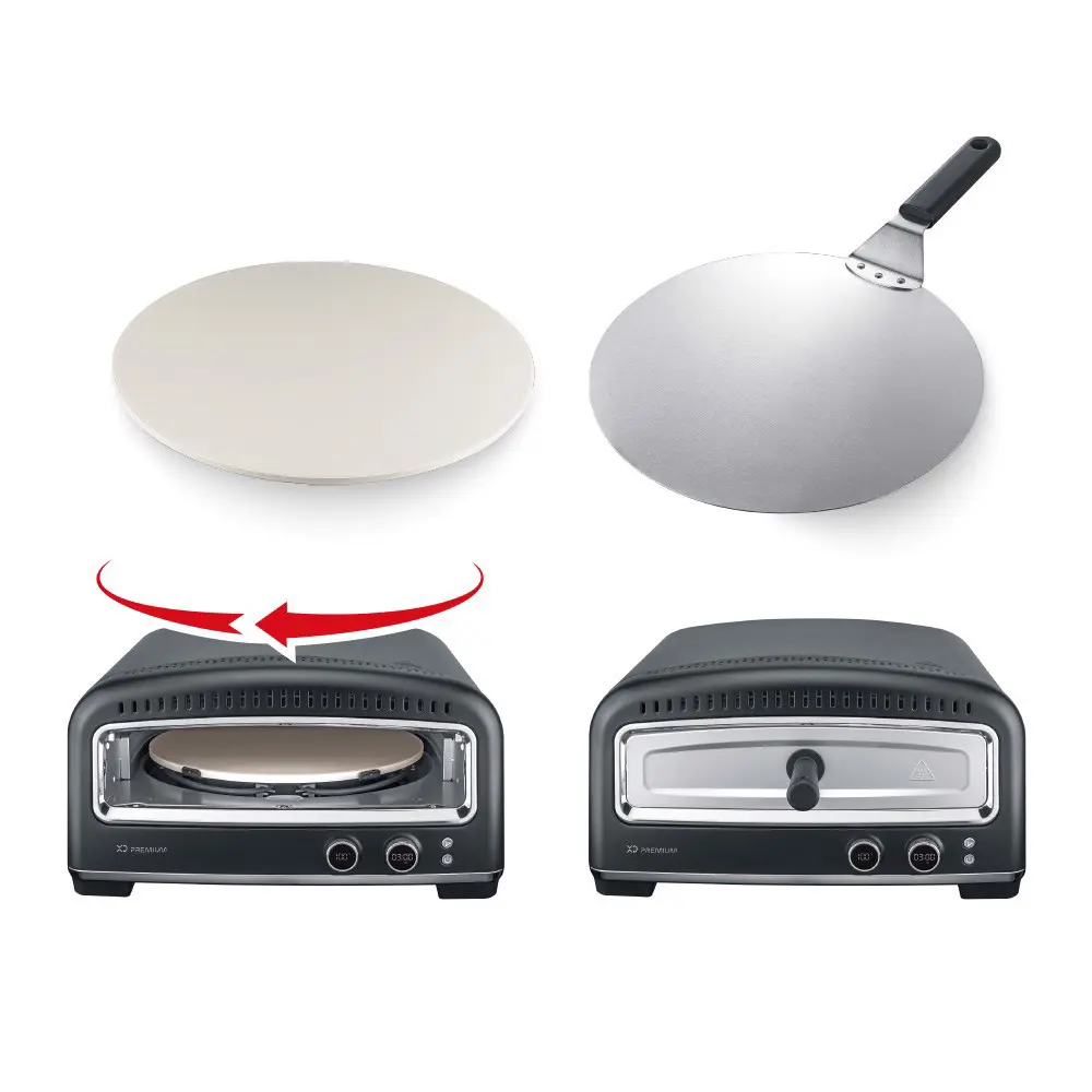XD Premium Fornetto Elettrico Cuoci-Pizza 2200W, 1 pizza(e), Nero, 450 °C, 1 h, Pietra, 1 m