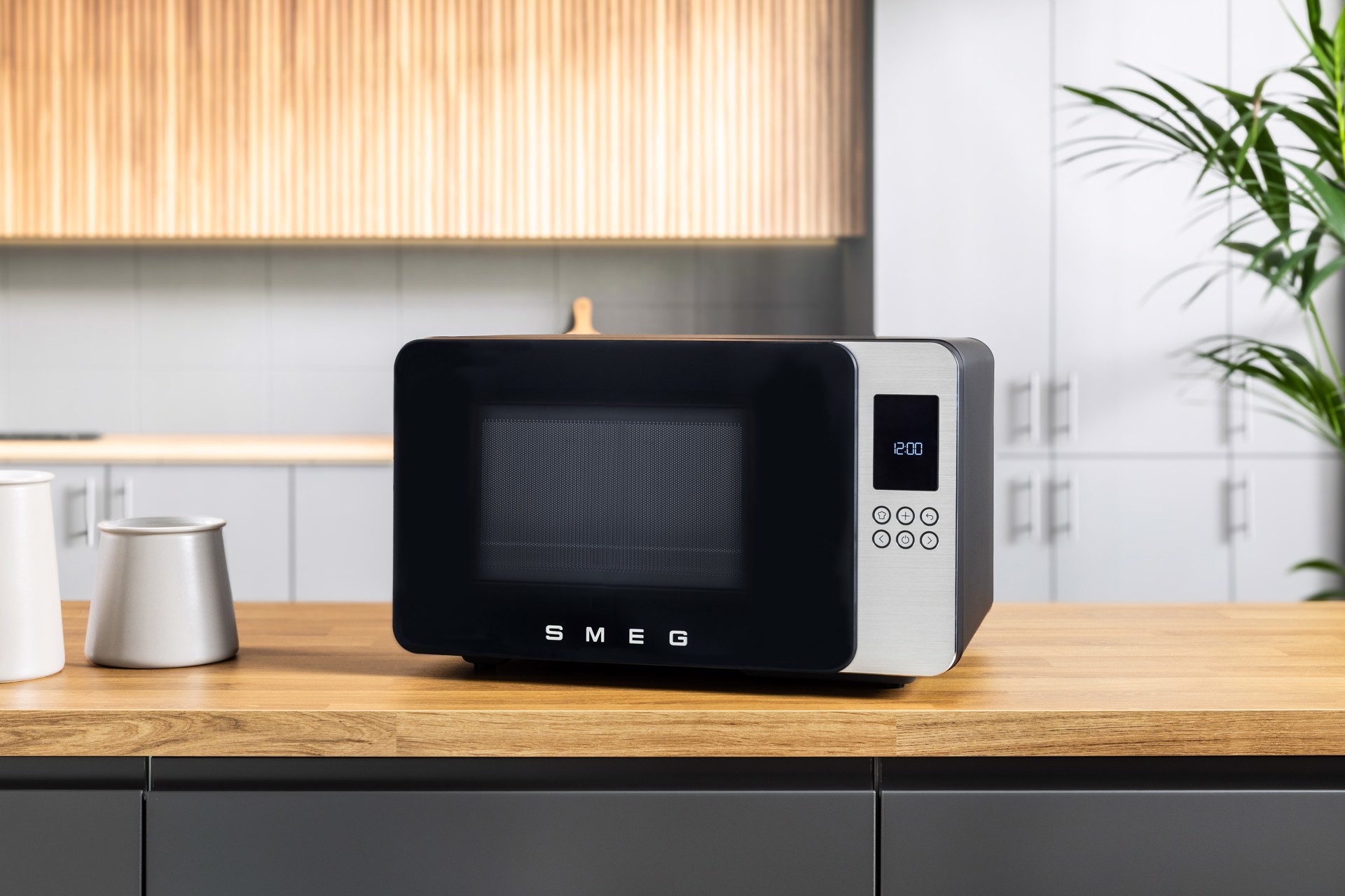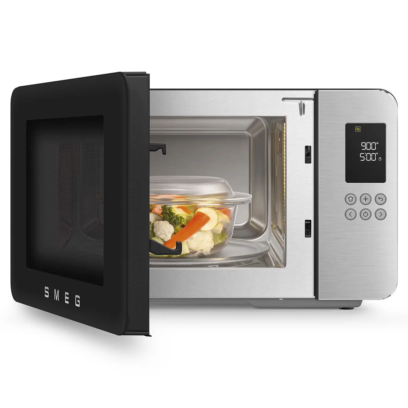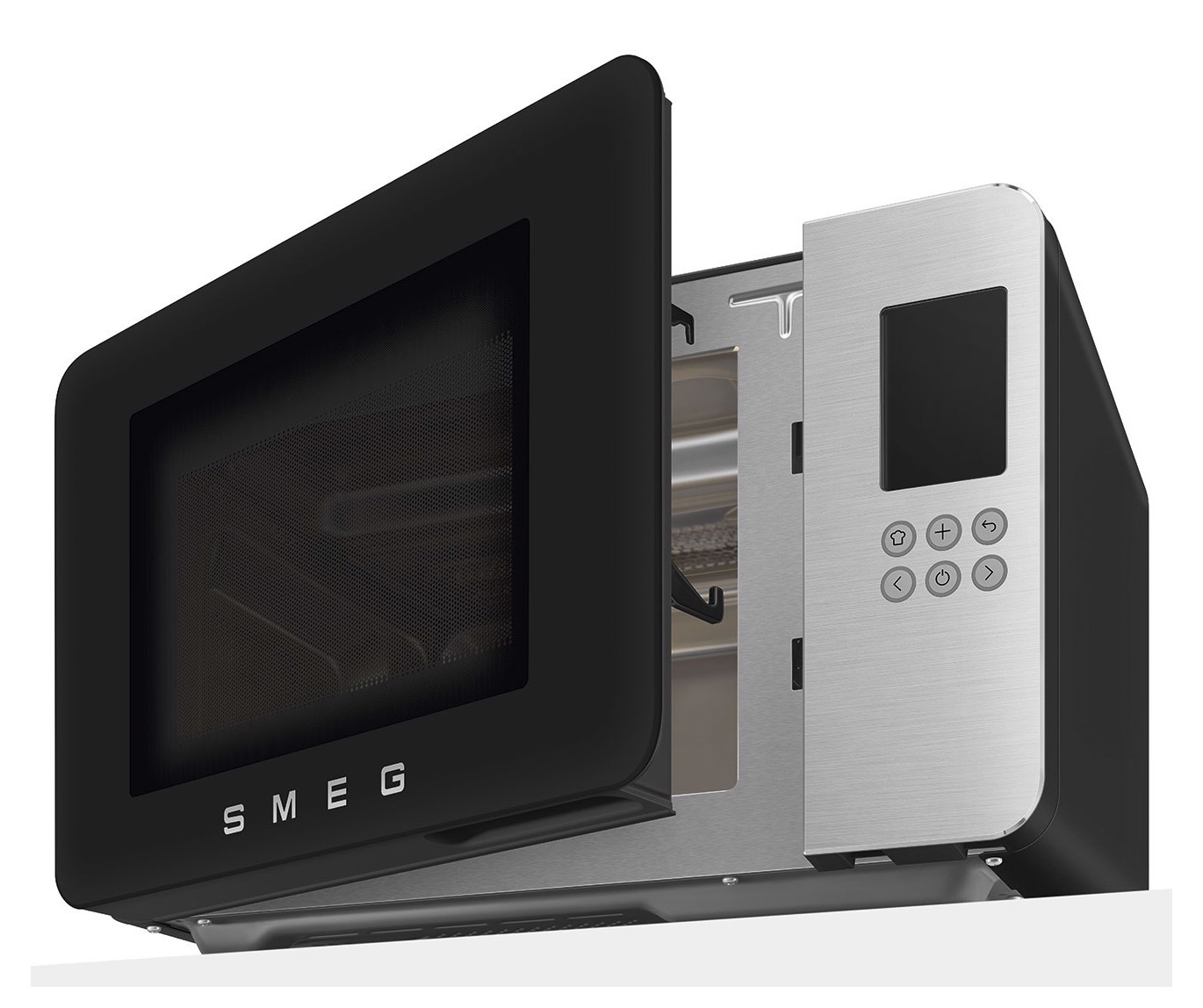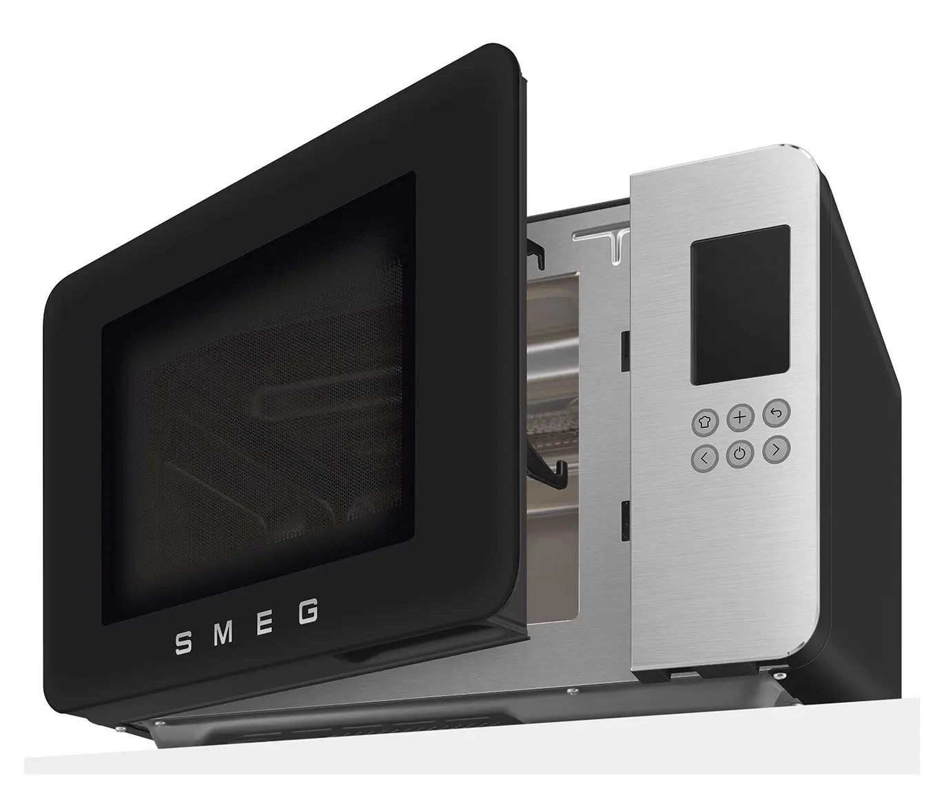 Smeg MOC01BLMEU. Posizionamento dell'apparecchio: Superficie piana, Tipo di prodotto: Microonde con grill, Capacità interna: 29 L, Potenza Microonde: 1450 W, Display incorporato, Tipo di display: LCD, Tipo di controllo: Pulsanti, Colore del prodotto: Nero
