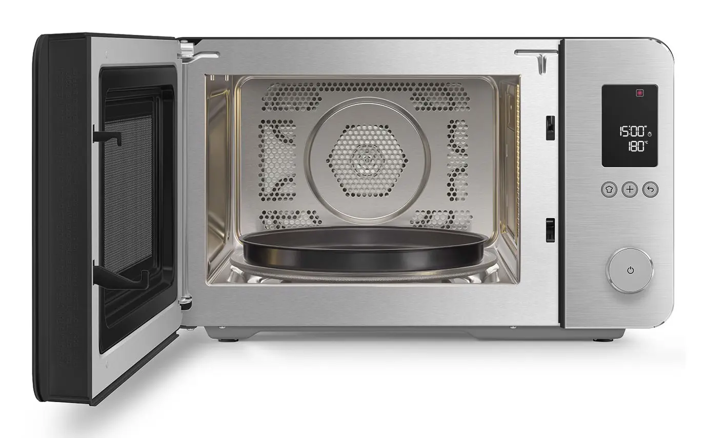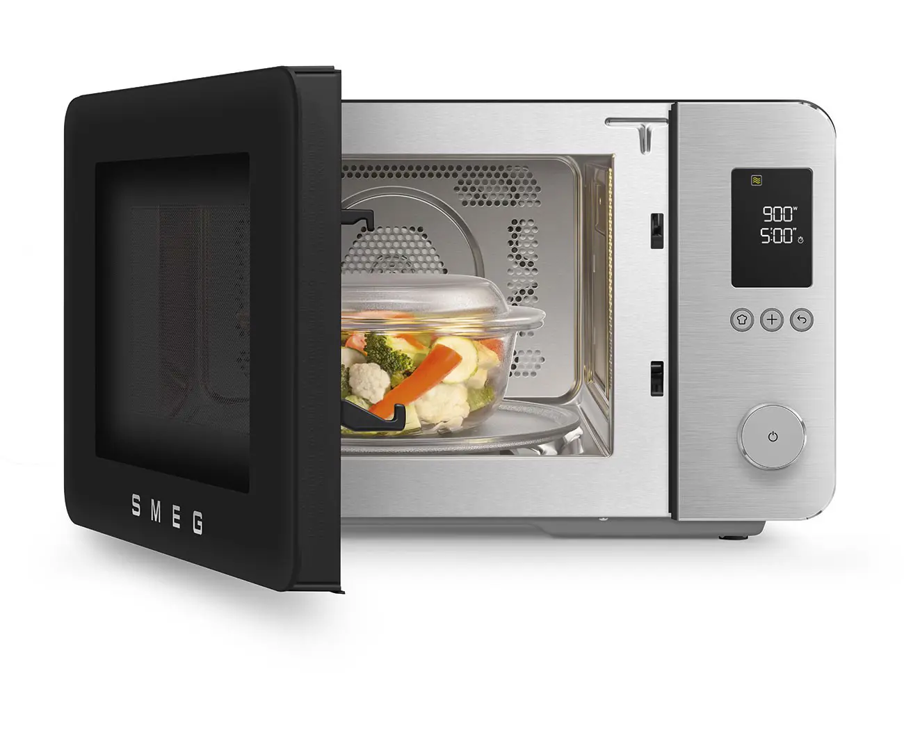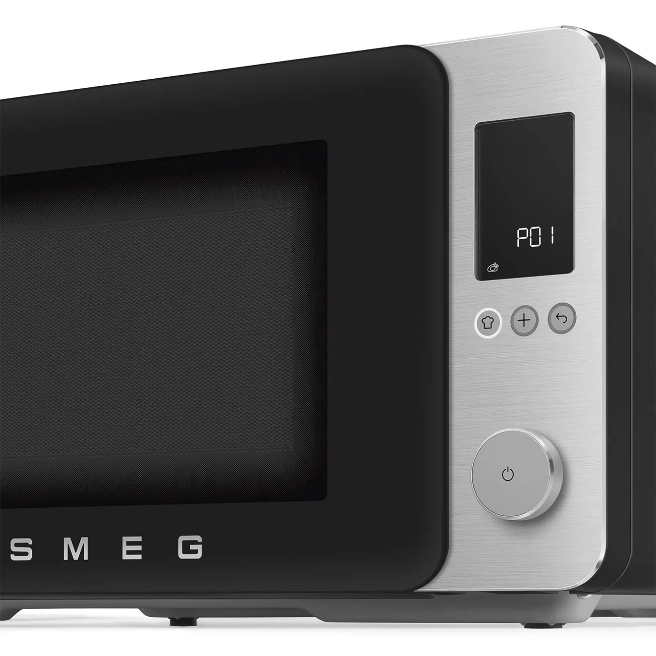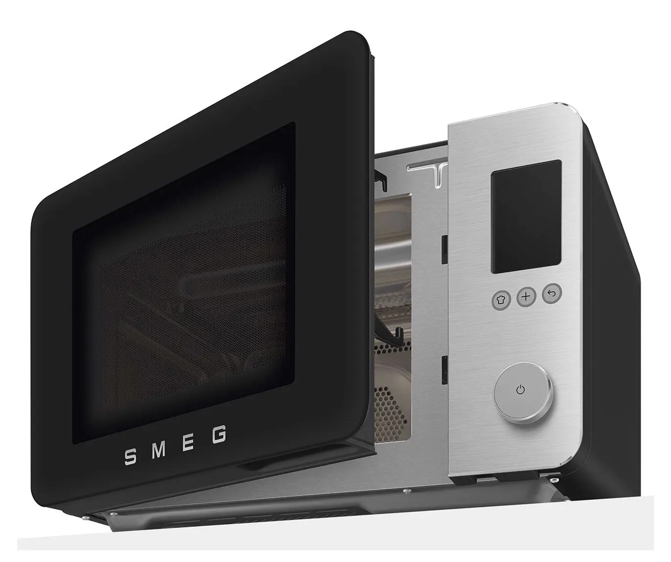 Smeg MOC02BLMEU. Posizionamento dell'apparecchio: Superficie piana, Tipo di prodotto: Microonde combinato, Capacità interna: 27 L, Potenza Microonde: 1450 W, Display incorporato, Tipo di display: LCD, Tipo di controllo: Pulsanti, Pulsante, Colore del prodotto: Nero