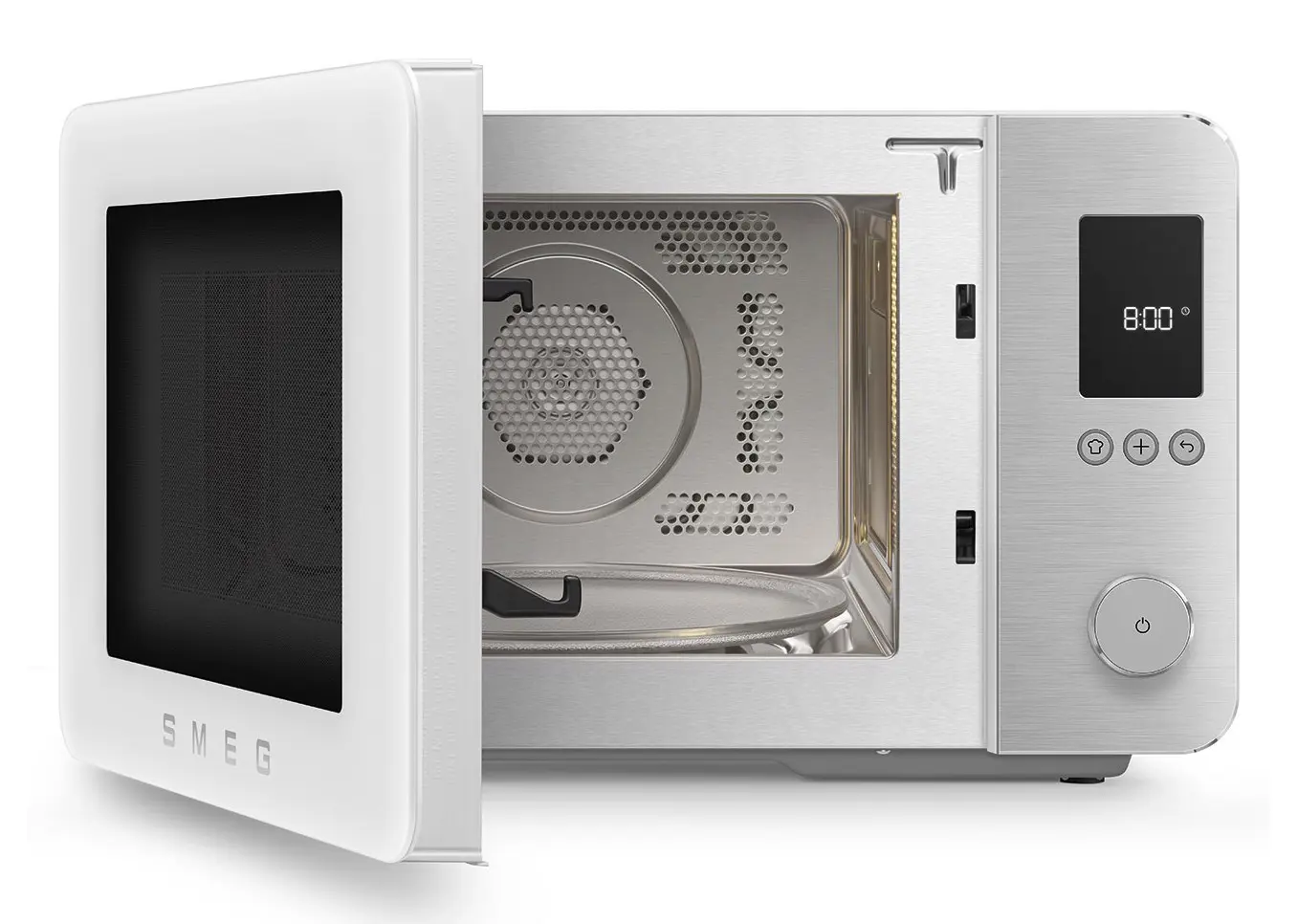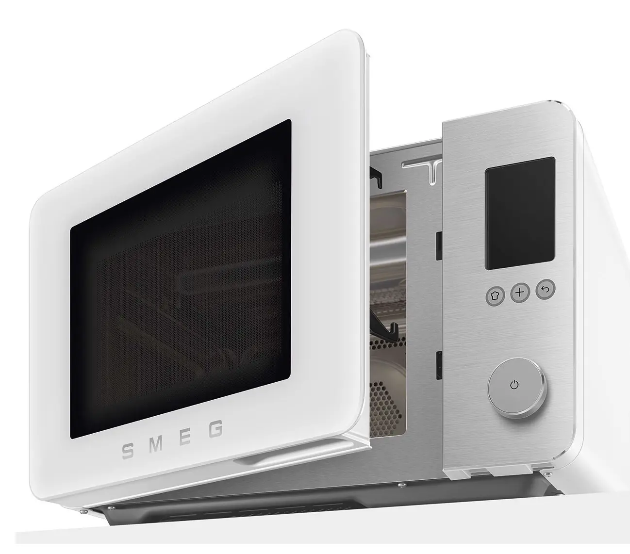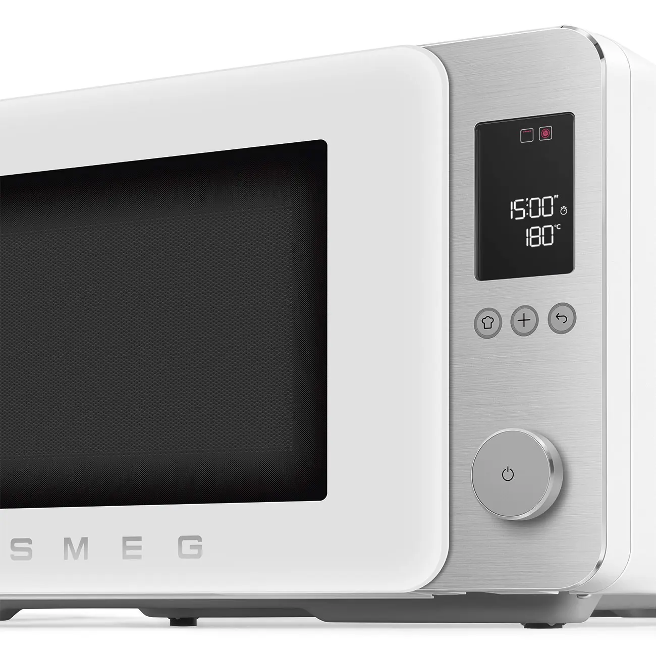 Smeg MOC02WHMEU. Posizionamento dell'apparecchio: Superficie piana, Tipo di prodotto: Microonde combinato, Capacità interna: 27 L, Potenza Microonde: 1450 W, Display incorporato, Tipo di display: LCD, Tipo di controllo: Pulsanti, Pulsante, Colore del prodotto: Bianco
