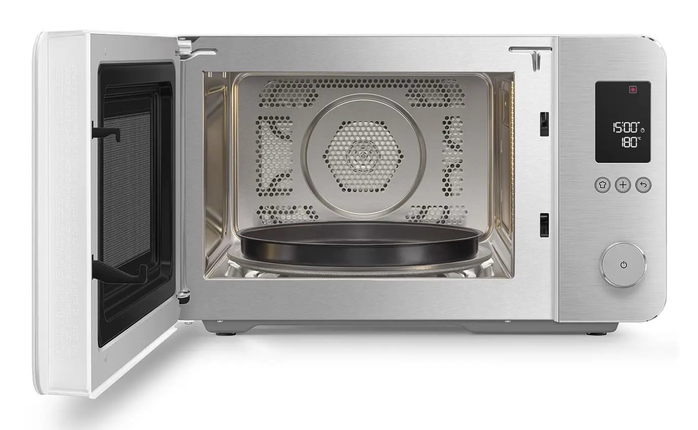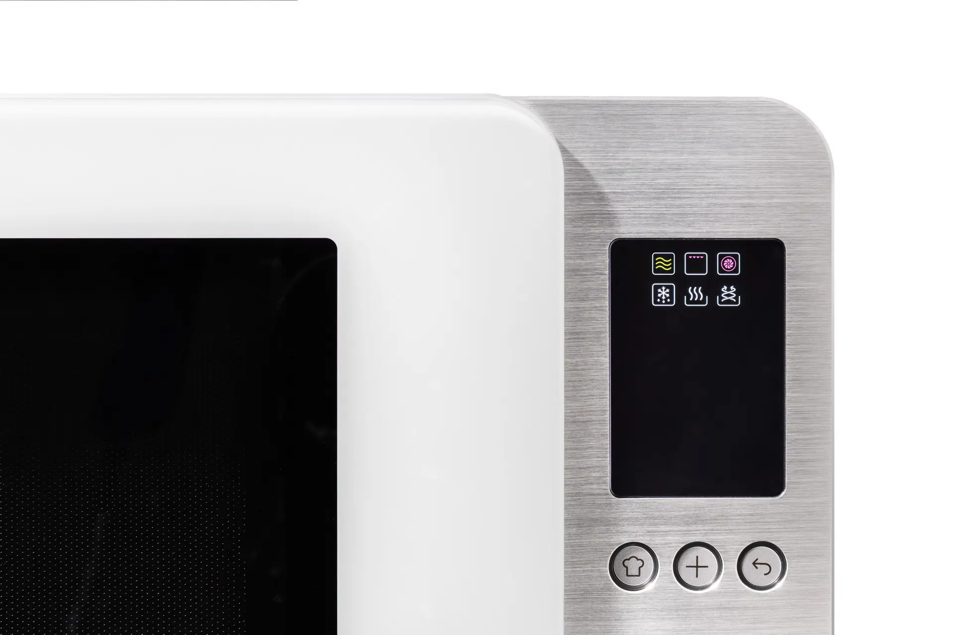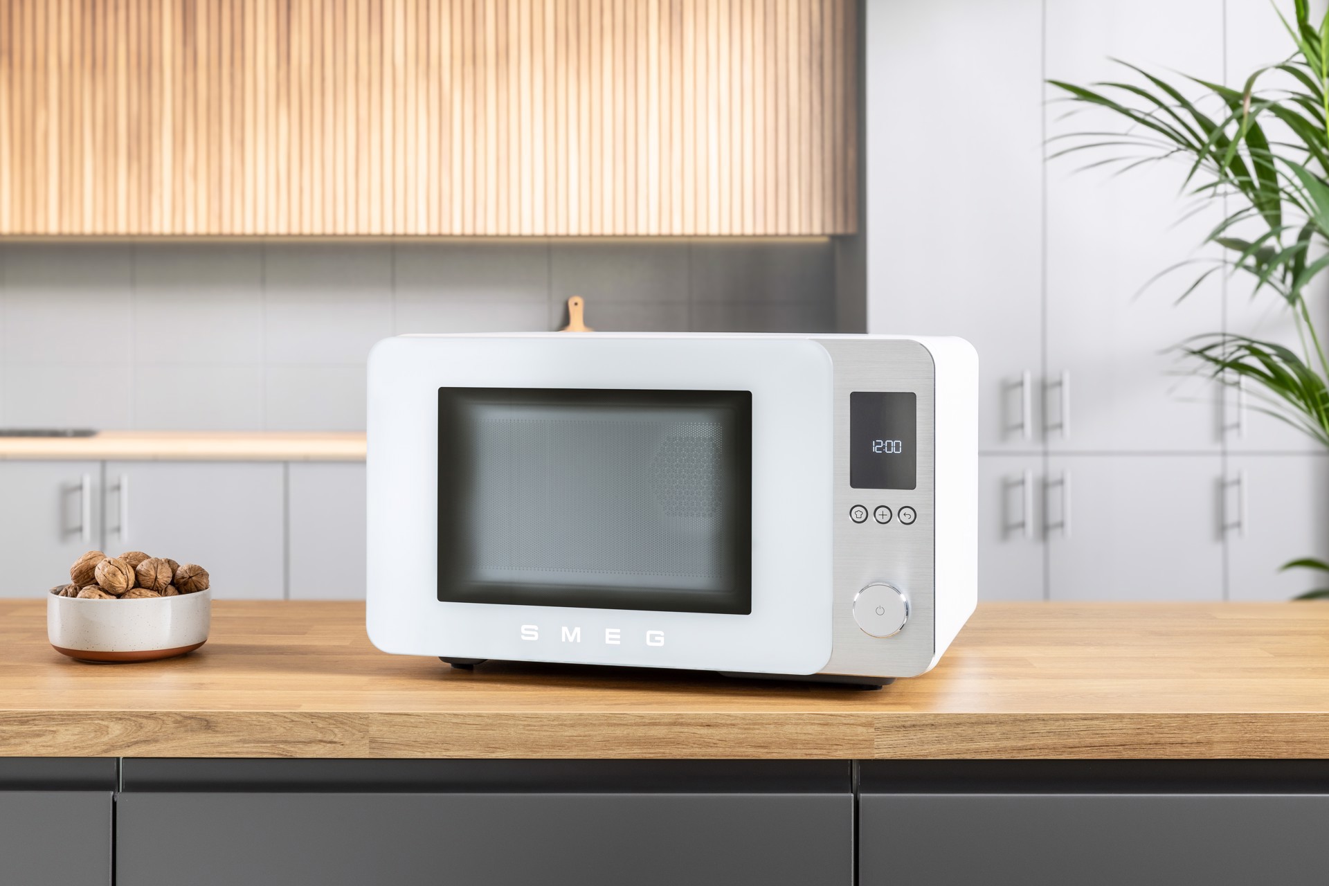 Smeg MOC02WHMEU. Posizionamento dell'apparecchio: Superficie piana, Tipo di prodotto: Microonde combinato, Capacità interna: 27 L, Potenza Microonde: 1450 W, Display incorporato, Tipo di display: LCD, Tipo di controllo: Pulsanti, Pulsante, Colore del prodotto: Bianco