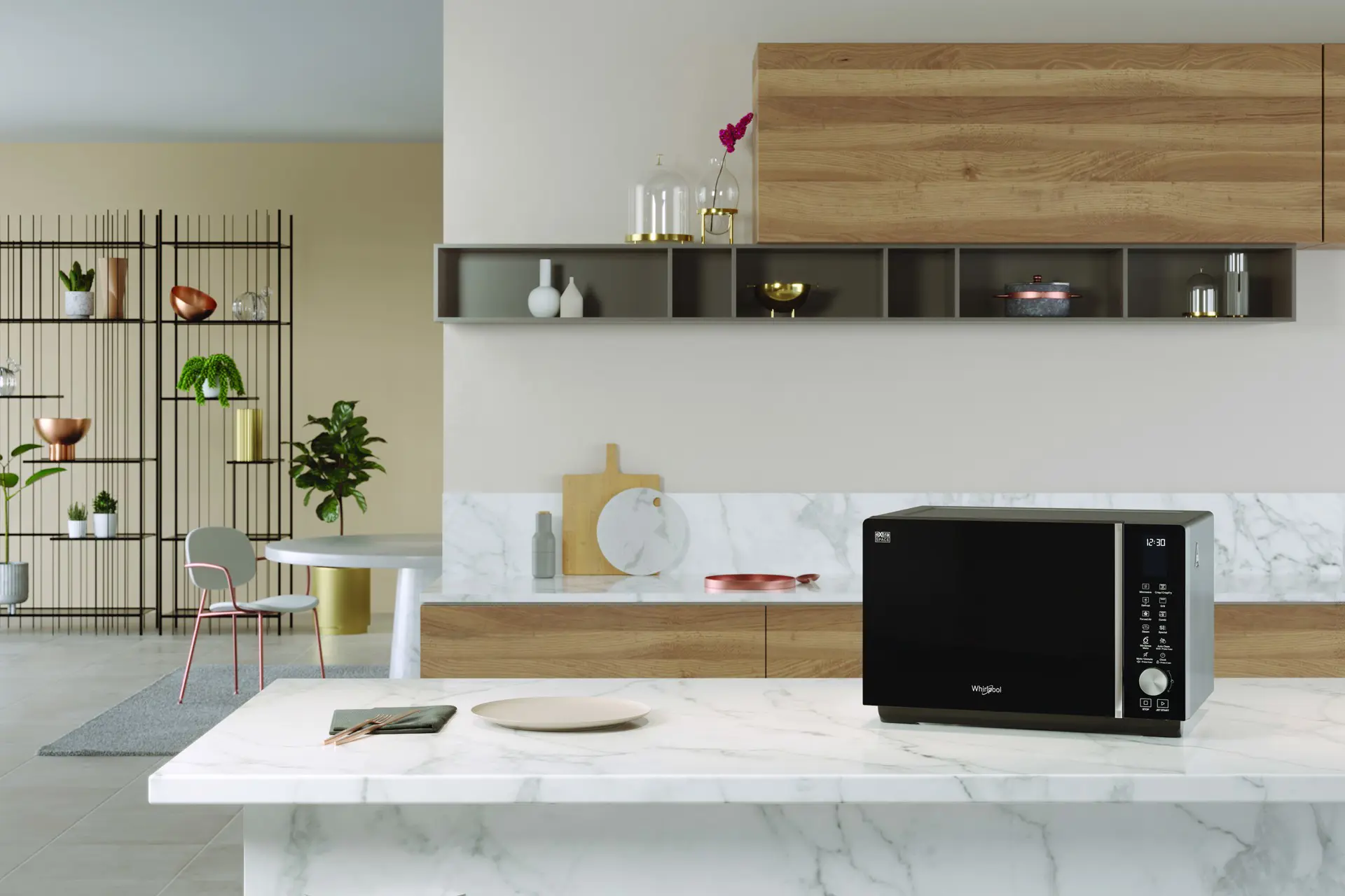 Caratteristiche di questo microonde a libera installazione Whirlpool: colore nero. Tecnologia combinata, per avere la flessibilità di cottura dei forni tradizionali. Esclusiva tecnologia 6° SENSO che regola automaticamente il tempo, la temperatura e il consumo di energia durante la preparazione. Funzione Crisp, per un'ineguagliabile croccantezza dei tuoi sformati, pizze e torte. Funzione cottura a vapore, basta premere un pulsante per goderti piatti sani, leggeri e gustosi.