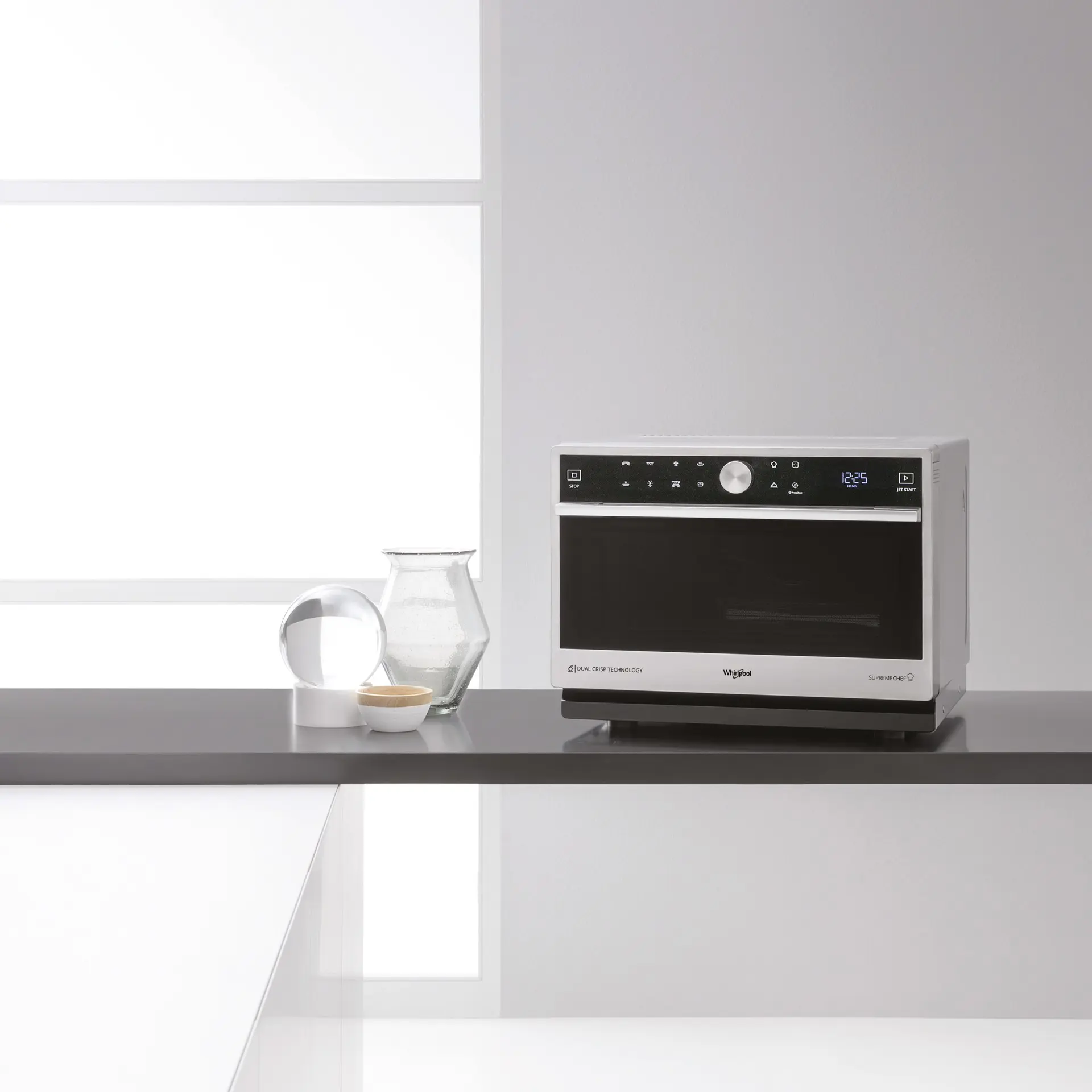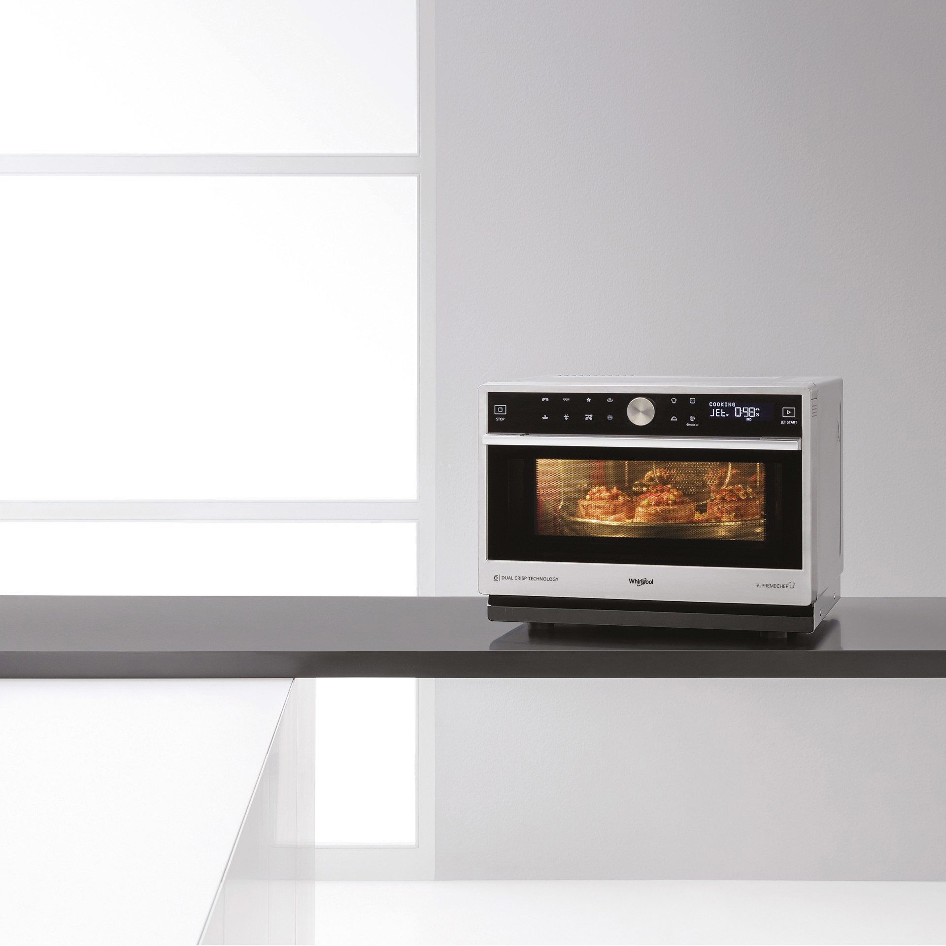 Caratteristiche di questo microonde a libera installazione Whirlpool: eccezionale dimensione interna. Tecnologia combinata, per avere la flessibilità di cottura dei forni tradizionali. Esclusiva tecnologia 6° SENSO che regola automaticamente il tempo, la temperatura e il consumo di
