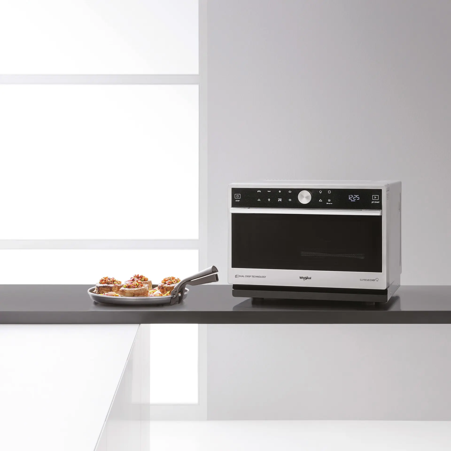 Goditi una croccantezza imbattibile all'esterno e una deliziosa morbidezza all'interno con DualCrisp. Una tecnologia esclusiva Whirlpool: due emissioni di microonde avvolgono completamente il cibo e lo cucinano anche dal basso.