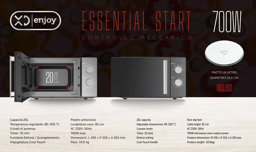 XD Enjoy XDDWMX55M forno a microonde Nero Solo microonde Superficie piana 20 L 700 W