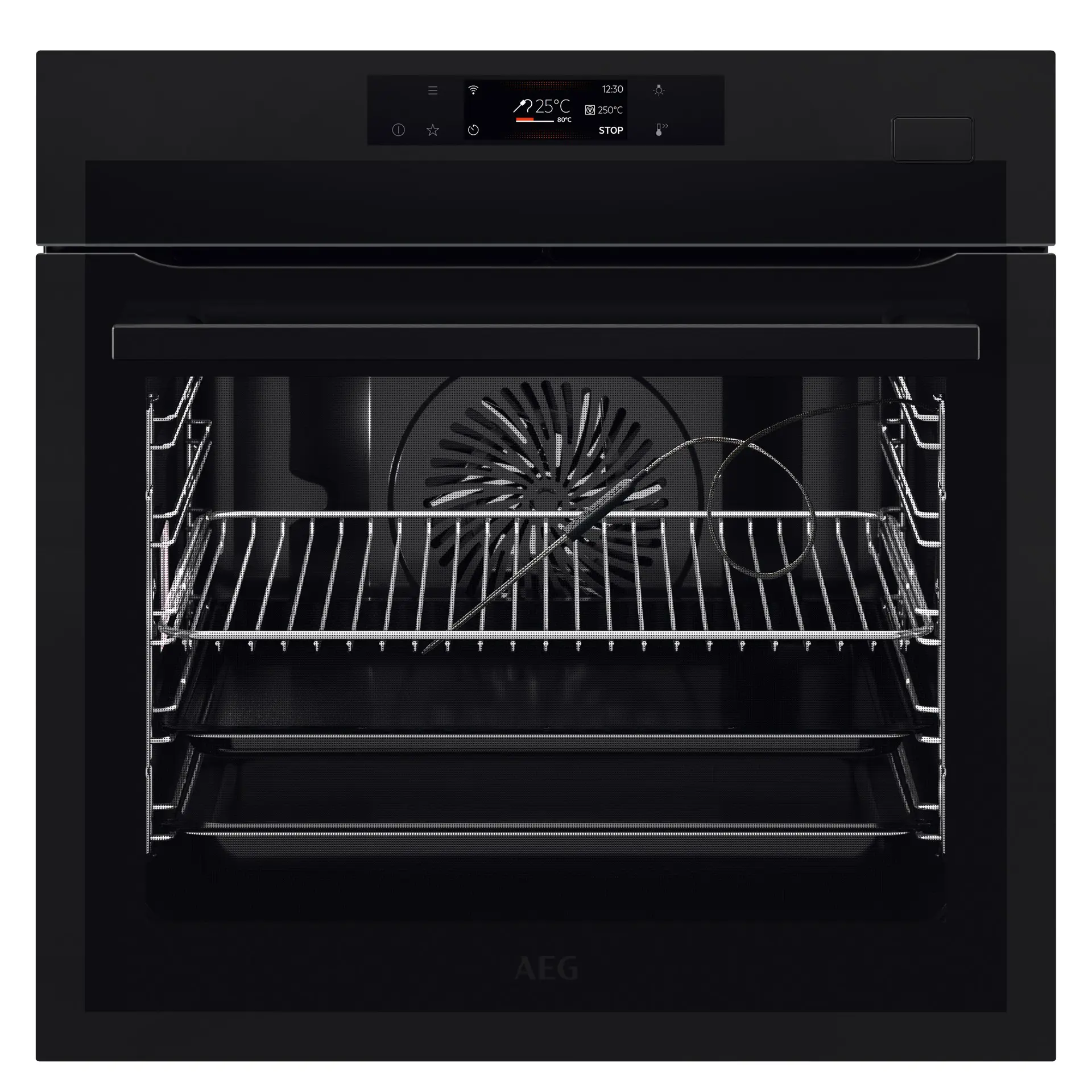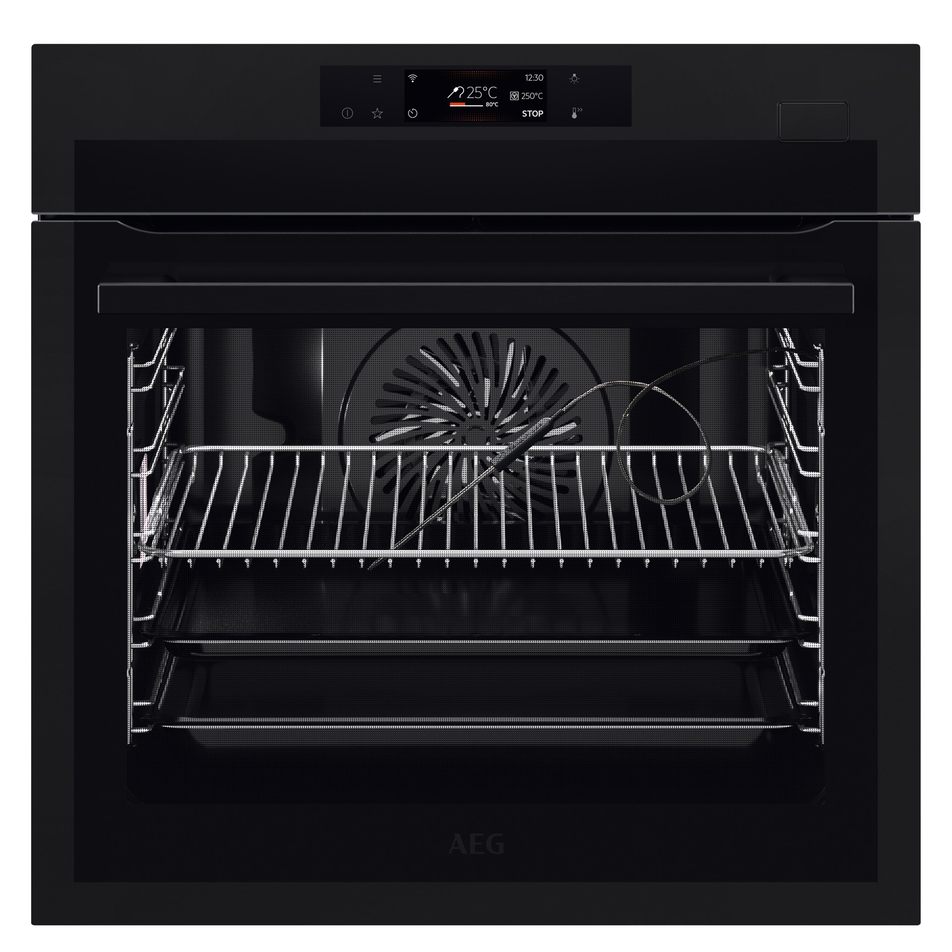 AEG Series 7000 BSE778380T. Dimensione del forno: Media, Tipo di forno: Forno elettrico, Capacità interna forno totale: 71 L. Posizionamento dell'apparecchio: Da incasso, Colore del prodotto: Nero, Tipo di controllo: Touch. Tipo di orologio: Elettronico, Tipo di timer: Digitale, Applicazioni per il controllo supportate: AEG Kitchen. Classe efficienza energetica: A++, Consumo energetico (convenzionale): 1,09 kWh, Consumo energetico (convezione forzata): 0,52 kWh. Quantità lampade: 2 lampada(e), Tipo di lampada: Alogena