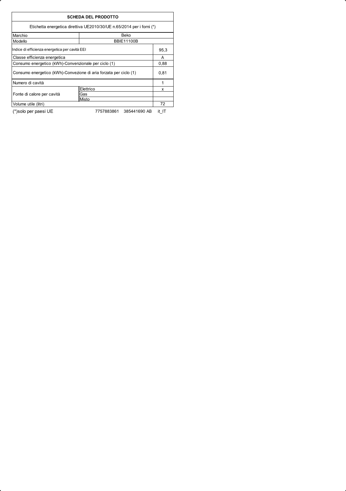 Beko BBIE11100B 72 L 2400 W A Nero