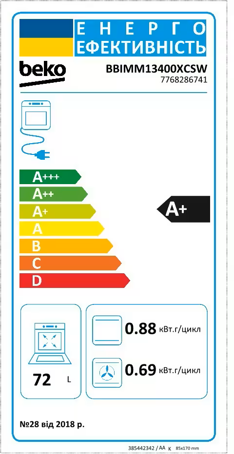 Beko BBIMM13400XCSW, Media, Forno elettrico, 72 L, 3400 W, 72 L, Termoventilato