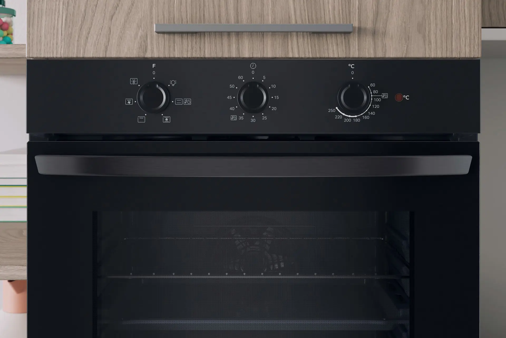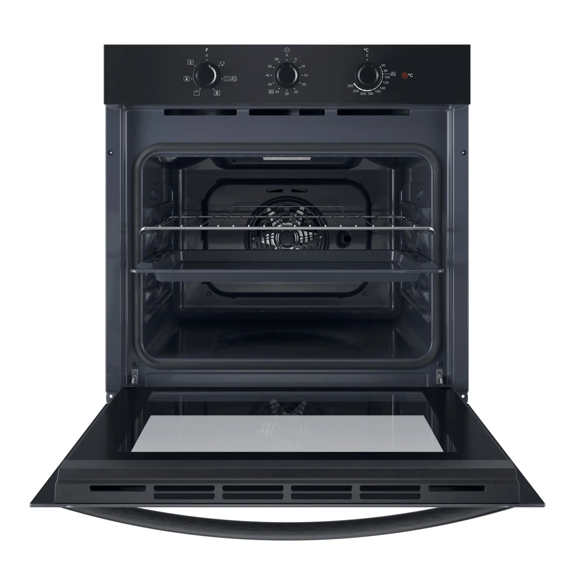 Indesit IO 235H B forno Multifunzione Mate 6Funzioni totali classe A 66Lt Idrolisi. Dimensione del forno: Media, Tipo di forno: Forno elettrico, Capacità interna forno totale: 66 L. Posizionamento dell'apparecchio: Da incasso, Colore del prodotto: Nero, Tipo di controllo: Manopola. Tipo di timer: Meccanico. Classe efficienza energetica: A, Consumo energetico (convenzionale): 0,79 kWh, Consumo energetico (convezione forzata): 0,88 kWh. Quantità lampade: 1 lampada(e), posizione delle illuminazioni: Anteriore sinistra