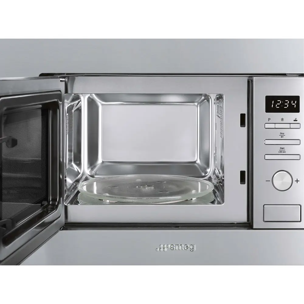 Smeg FMI017X. Posizionamento dell'apparecchio: Da incasso, Tipo di prodotto: Microonde con grill, Capacità interna: 20 L. Carico di collegamento: 1050 W. Larghezza: 595 mm, Profondità: 335 mm, Altezza: 382 mm