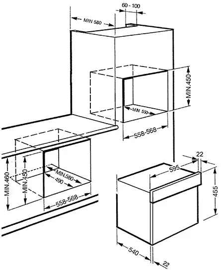 | Larghezza dello scomparto di installazione (min) | 55,8 cm |