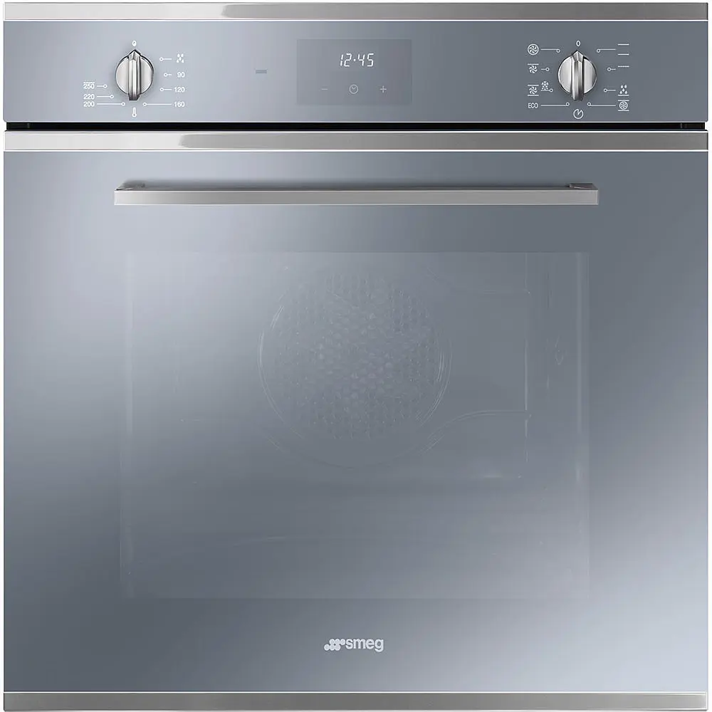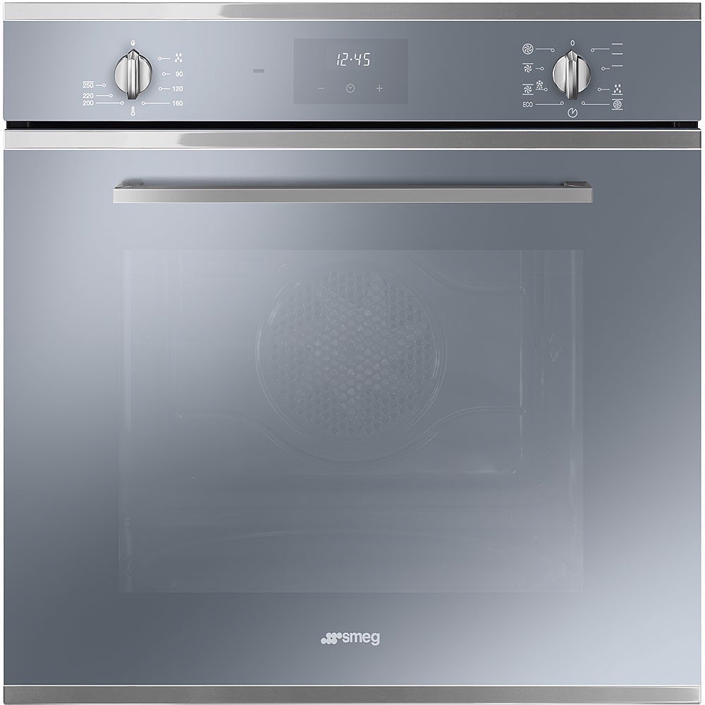 Smeg SF6400TVS. Dimensione del forno: Media, Tipo di forno: Forno elettrico, Capacità interna forno totale: 70 L. Posizionamento dell'apparecchio: Da incasso, Colore del prodotto: Argento, Tipo di controllo: Manopola, Touch. Tipo di timer: Digitale, Modalità di impostazione del timer: Timer. Classe efficienza energetica: A, Consumo energetico (convenzionale): 1,15 kWh, Consumo energetico (convezione forzata): 0,8 kWh. Quantità lampade: 1 lampada(e), Tipo di lampada: Alogena, Potenza lampadina: 40 W