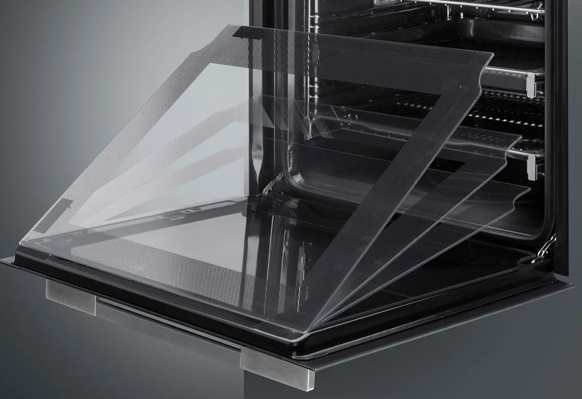 L’interno porta del forno presenta una superficie completamente liscia e senza viti, che facilita la rimozione dello sporco e rende più pratica la pulizia.