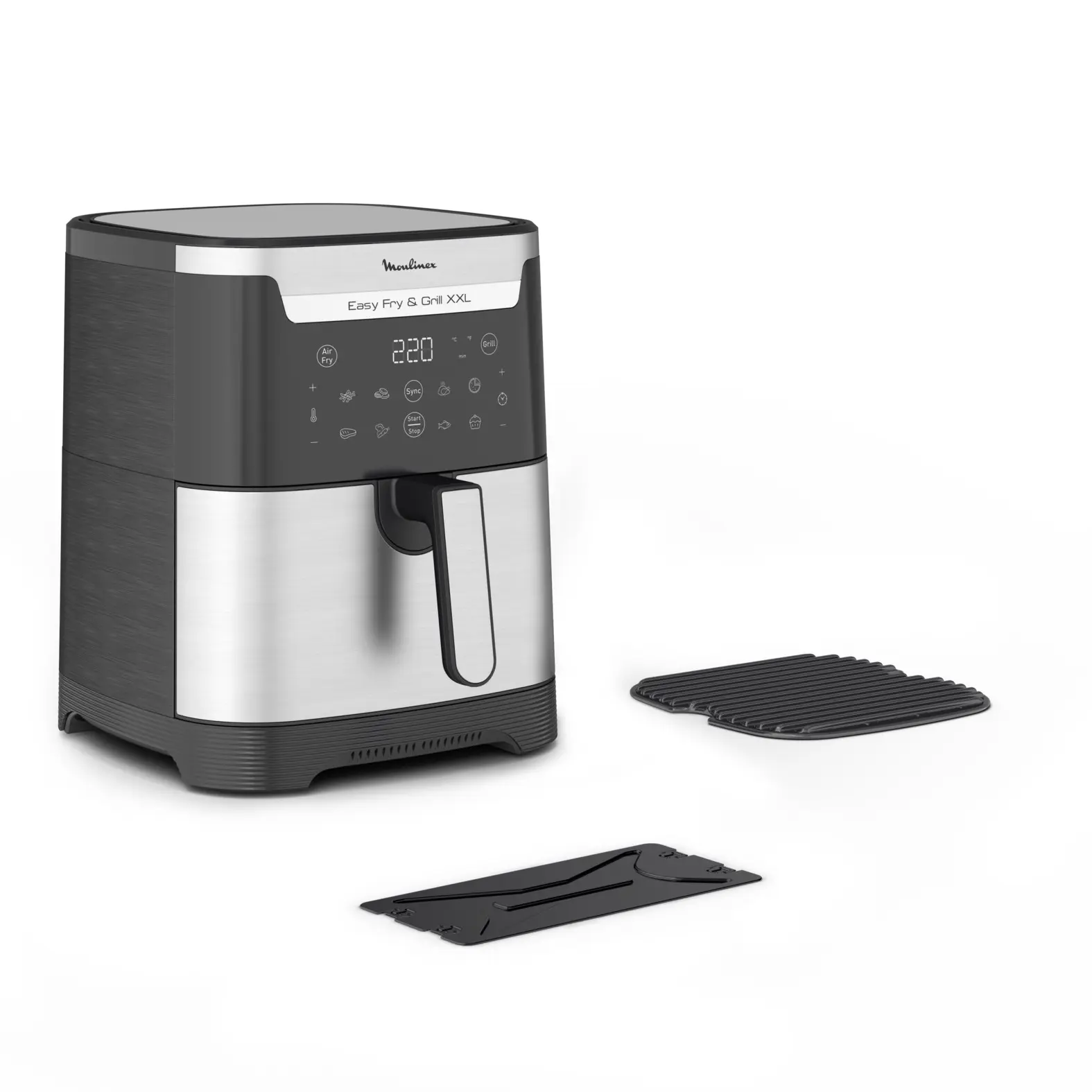 Frittura ad aria e griglia, anche contemporaneamente Delizia la tua famiglia con pasti sani e gustosi comodamente a casa tua grazie alla Friggitrice ad Aria e Griglia XXL Moulinex Easy Fry & Grill 2-in-1. Il divisore rimovibile Flexcook ti permette ...
