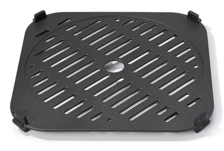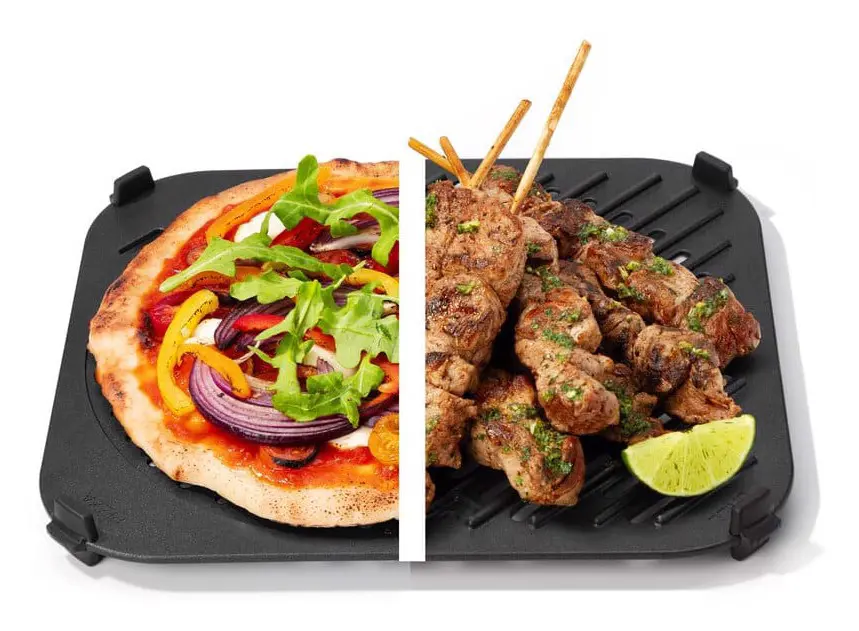 Questo accessorio revesrsibile, rivestito in ceramica priva di PFAS, espande le capacità della tua friggitrice ad aria con due opzioni di cottura specializzate: 1. Una piastra per grigliare che offre il gusto della fiamma viva, con tanto di carbonizzazione, senza l'aggiunta di sporcizia, carbone o pulizia difficile. 2. Un piatto per croccanti e pizza progettato per friggere i tuoi cibi preferiti alla perfezione o per impasti come la pizza fino a renderla perfettamente tenera e croccante, sciogliendo e amalgamando i tuoi condimenti preferiti.