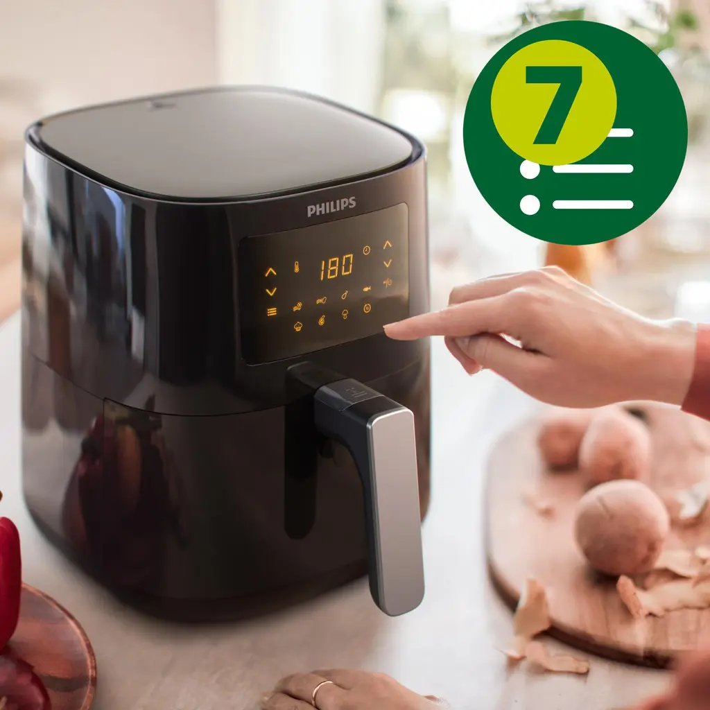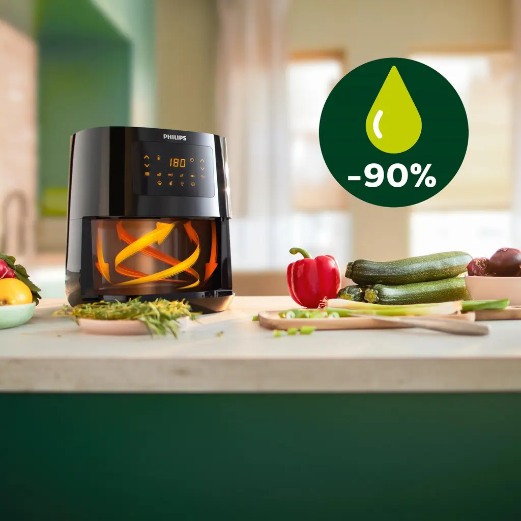Ottime patatine e fino al 90% in meno di grassi!Grazie alla tecnologia Rapid Air Philips porta il miglior Airfryer al mondo in tutte le case. Gusta cibi sani croccanti all'esterno e teneri all'interno grazie alla tecnologia Rapid Air. Scarica l'app N...