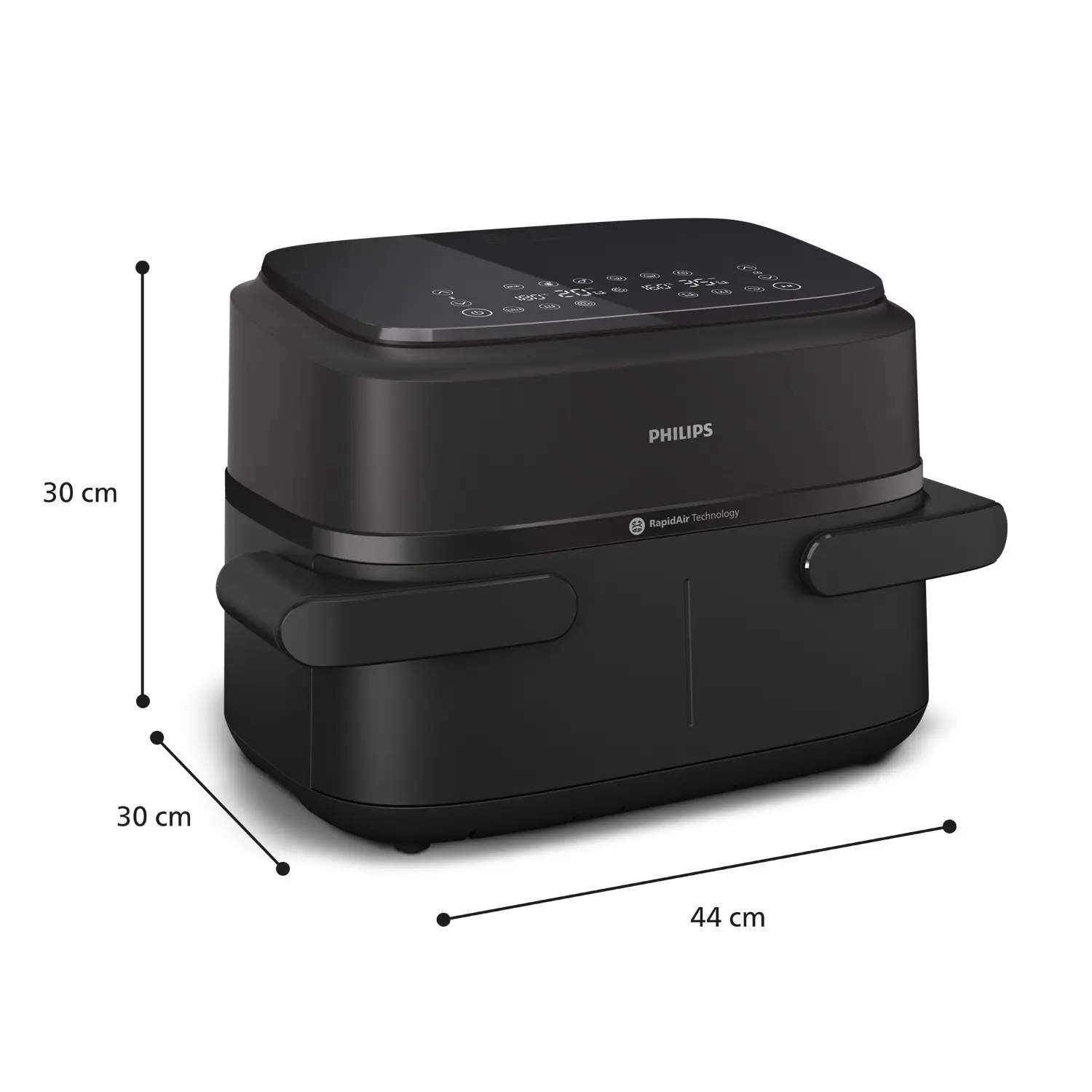 Philips Serie 1000 Airfryer con cestello flessibile/doppio, friggitrice ad aria da 7.1L, 10 metodi di cottura, App per ricette NA150/00, Friggitrice ad aria calda, 7,1 L, Rapid Air, 40 °C, 200 °C, 60 min