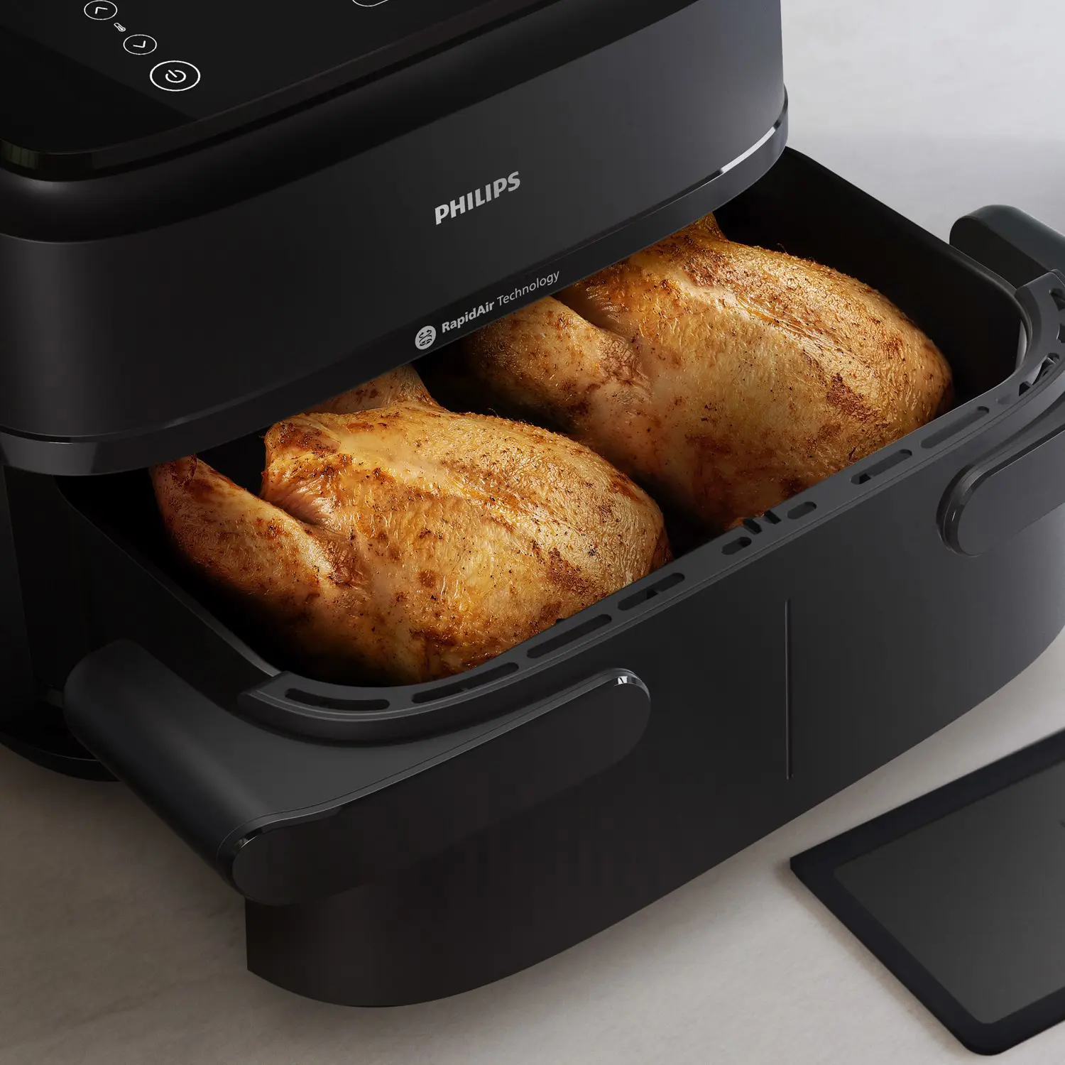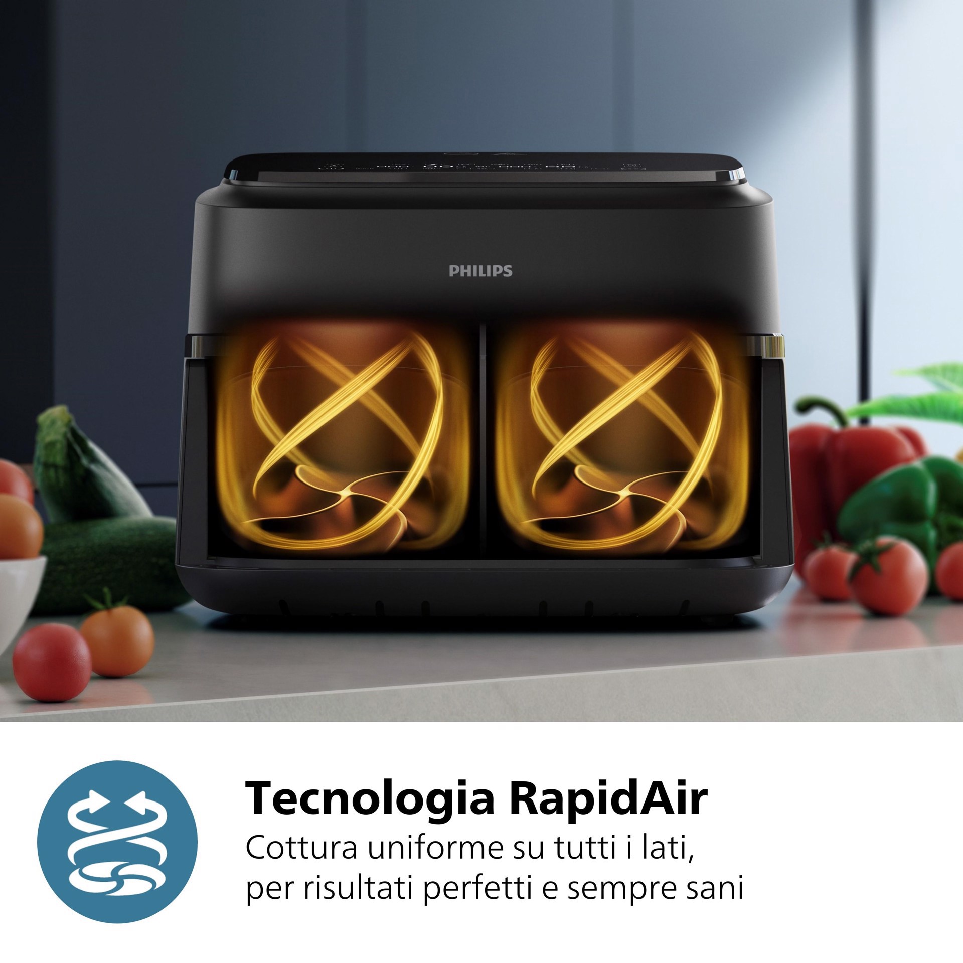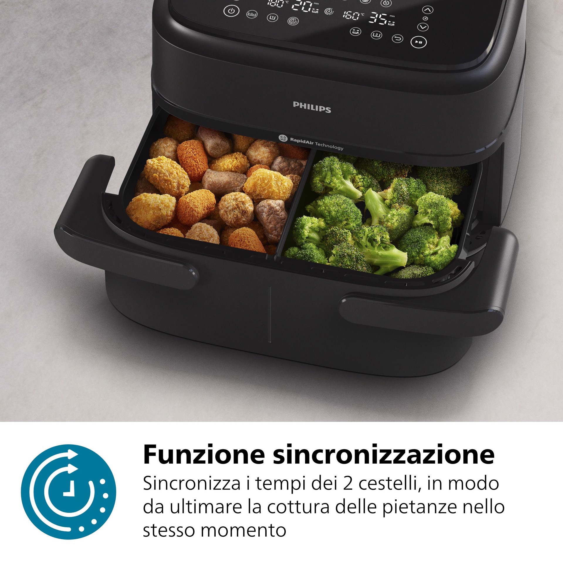 Philips Serie 1000 Airfryer con cestello flessibile/doppio, friggitrice ad aria da 7.1L, 10 metodi di cottura, App per ricette NA150/00