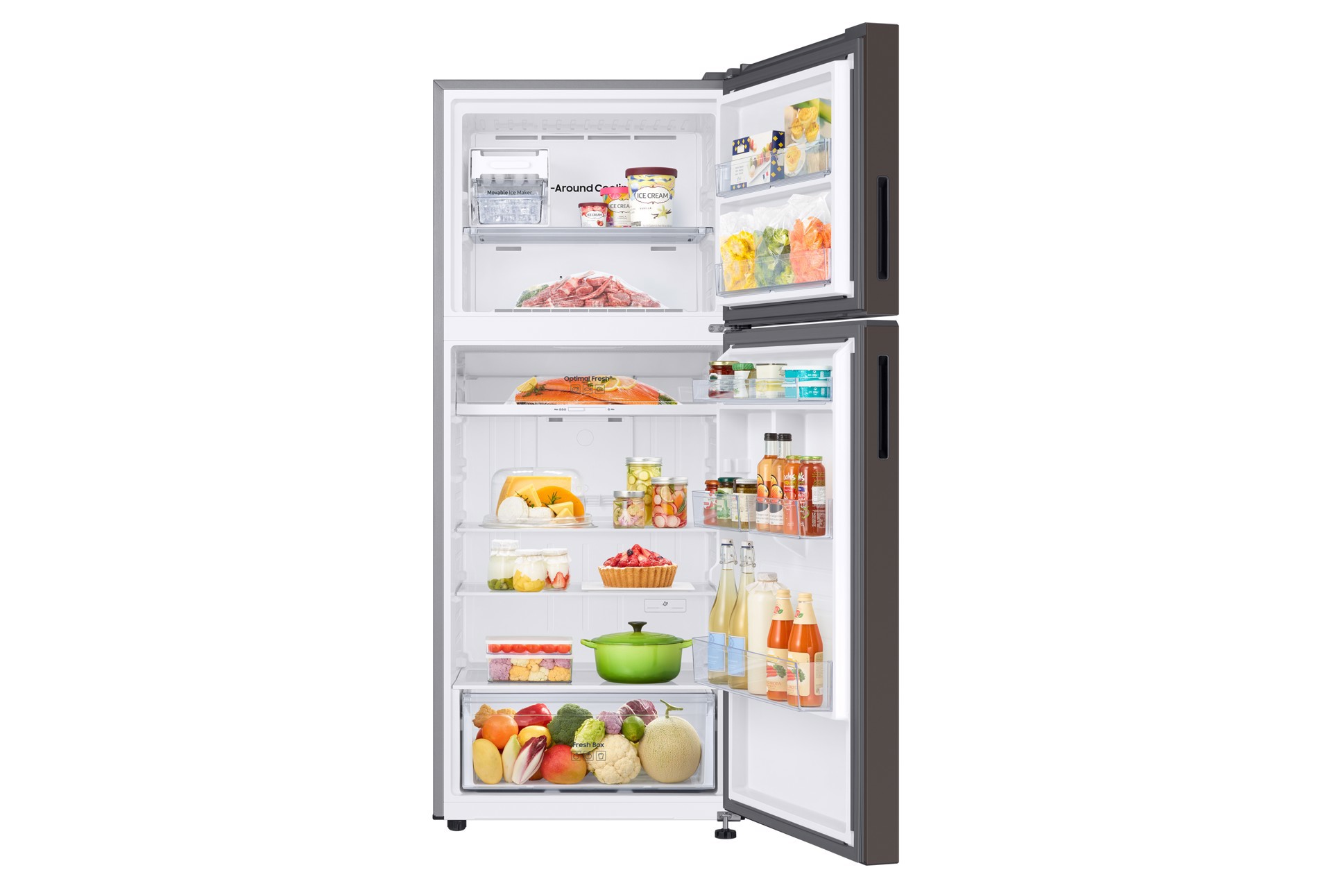 Assicurati che i tuoi alimenti siano adeguatamente refrigerati – in ogni zona del frigorifero. Il sistema All-Around Cooling garantisce un freddo uniforme in ogni zona del frigorifero. Controlla costantemente la temperatura e fa circolare l’aria fredda attraverso bocchette collocate in posizioni strategiche. In questo modo ogni ripiano viene raffreddato in modo ottimale e gli alimenti rimangono più freschi.