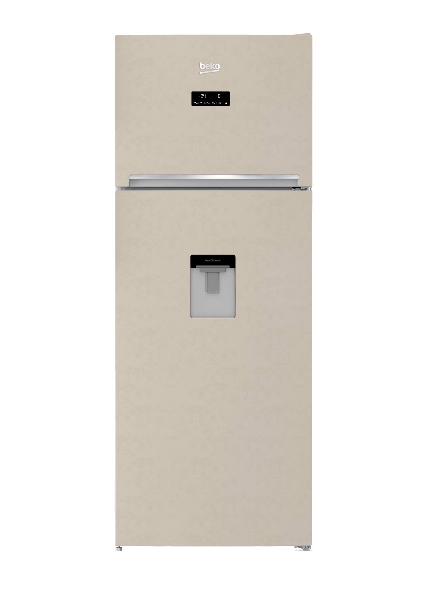 Beko RDNE455E30DBN. Capacità netta totale: 406 L. Cerniera porta: Destra, Tipo di display: LED. Classe climatica: SN-T, Emissione acustica: 39 dB. Capacità netta frigorifero: 313 L, No Frost (frigorifero), Luce interna, Numero di ripiani frigorifero: 4. Capacità netta congelatore: 93 L, Capacità di congelamento: 6 kg/24h, No Frost (congelatore). Classe efficienza energetica: F, Consumo energetico annuo: 304 kWh. Colore del prodotto: Sabbia