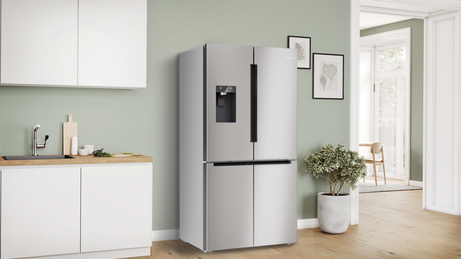 Bosch Serie 6 KFI96APEA Frigorifero multidoor da libera installazione, 183 x 90.5 cm, Acciaio spazzolato anti-impro Classe E, Libera installazione, Multi porta, Acciaio spazzolato, 4 porta/porte, Touch, Sulla porta