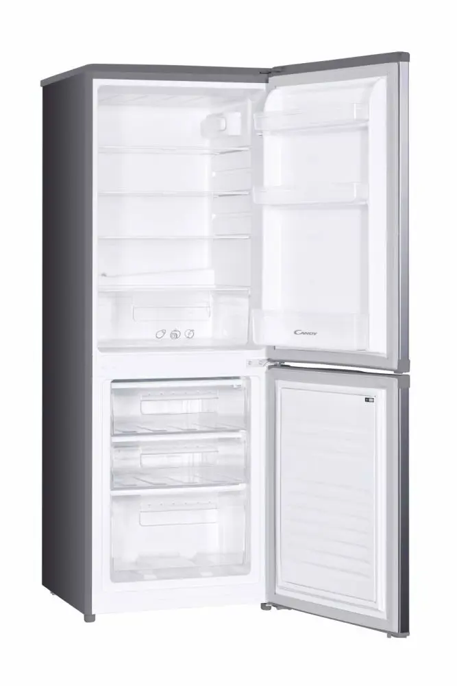 Candy CHCS 514EX. Capacità netta totale: 207 L. Cerniera porta: Destra. Emissione acustica: 40 dB. Capacità netta frigorifero: 138 L, Luce interna, Numero di ripiani frigorifero: 3, Numero di cassetti per verdura: 1. Capacità netta congelatore: 69 L, Capacità di congelamento: 3,2 kg/24h. Classe efficienza energetica: E, Consumo energetico annuo: 205 kWh. Colore del prodotto: Acciaio inossidabile