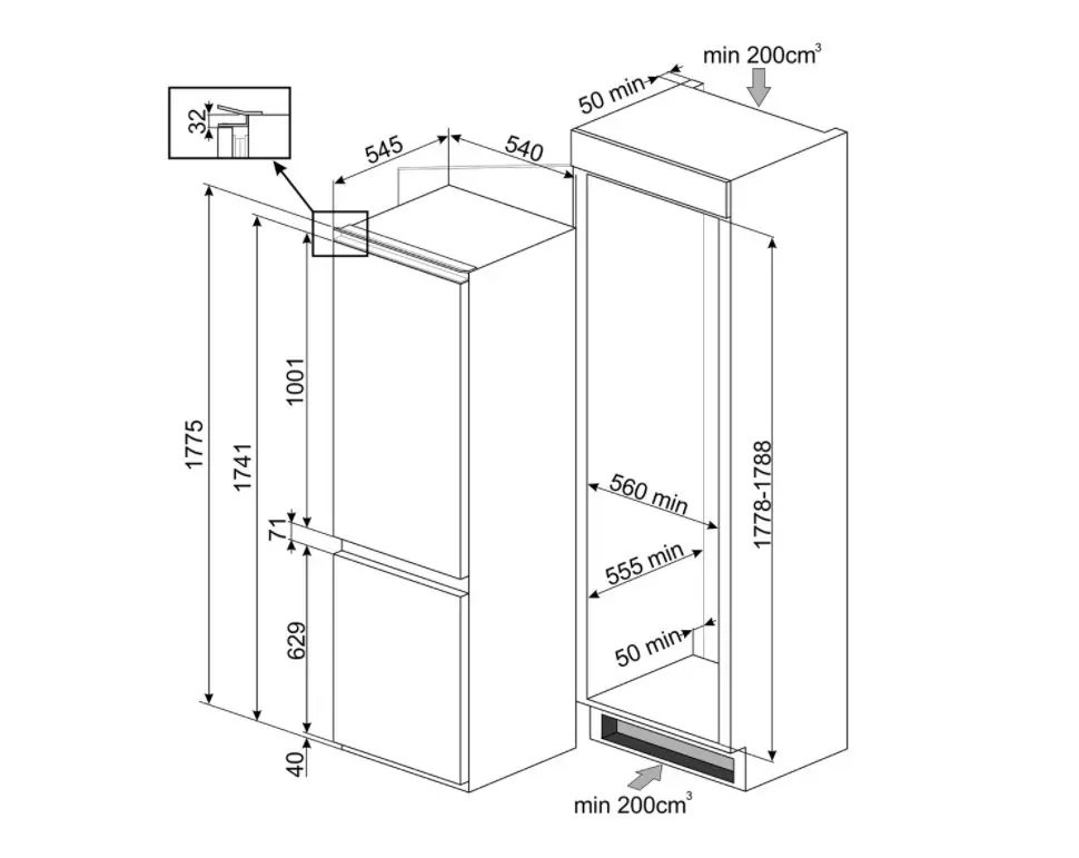 Frigorifero, Universale, Combinato, Incasso, Posizione cerniera: Destra, Bianco, No Frost Totale - Due, circuiti di raffreddamento