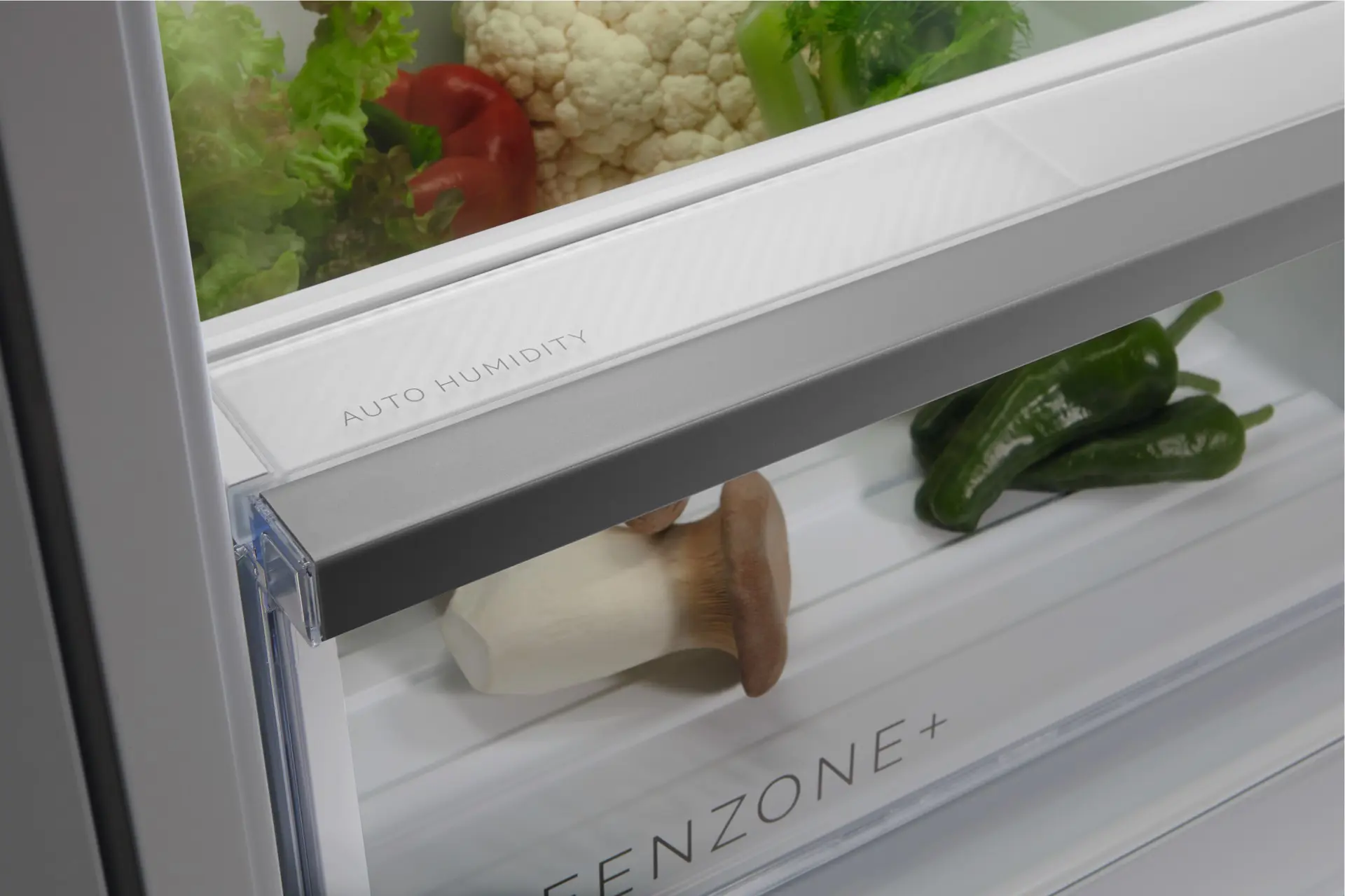 Proteggi la qualità degli alimenti e riduci gli sprechi fornendo temperatura e umidità stabile e uniforme nell’intero frigo. Cooling 360°, con interni in acciaio inox di alto livello, offre una distribuzione della temperatura migliore del 30% su ciascun ripiano.
