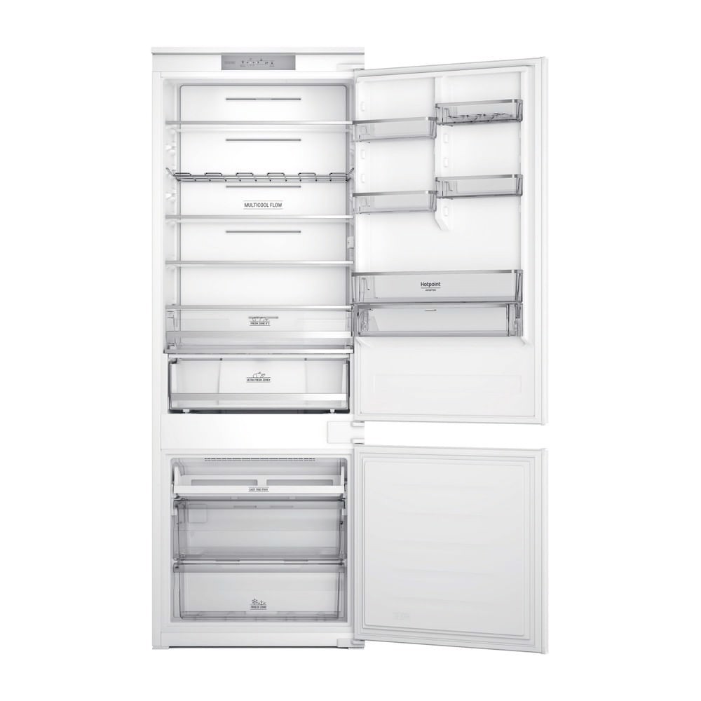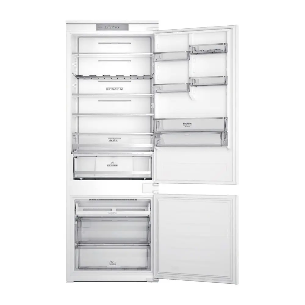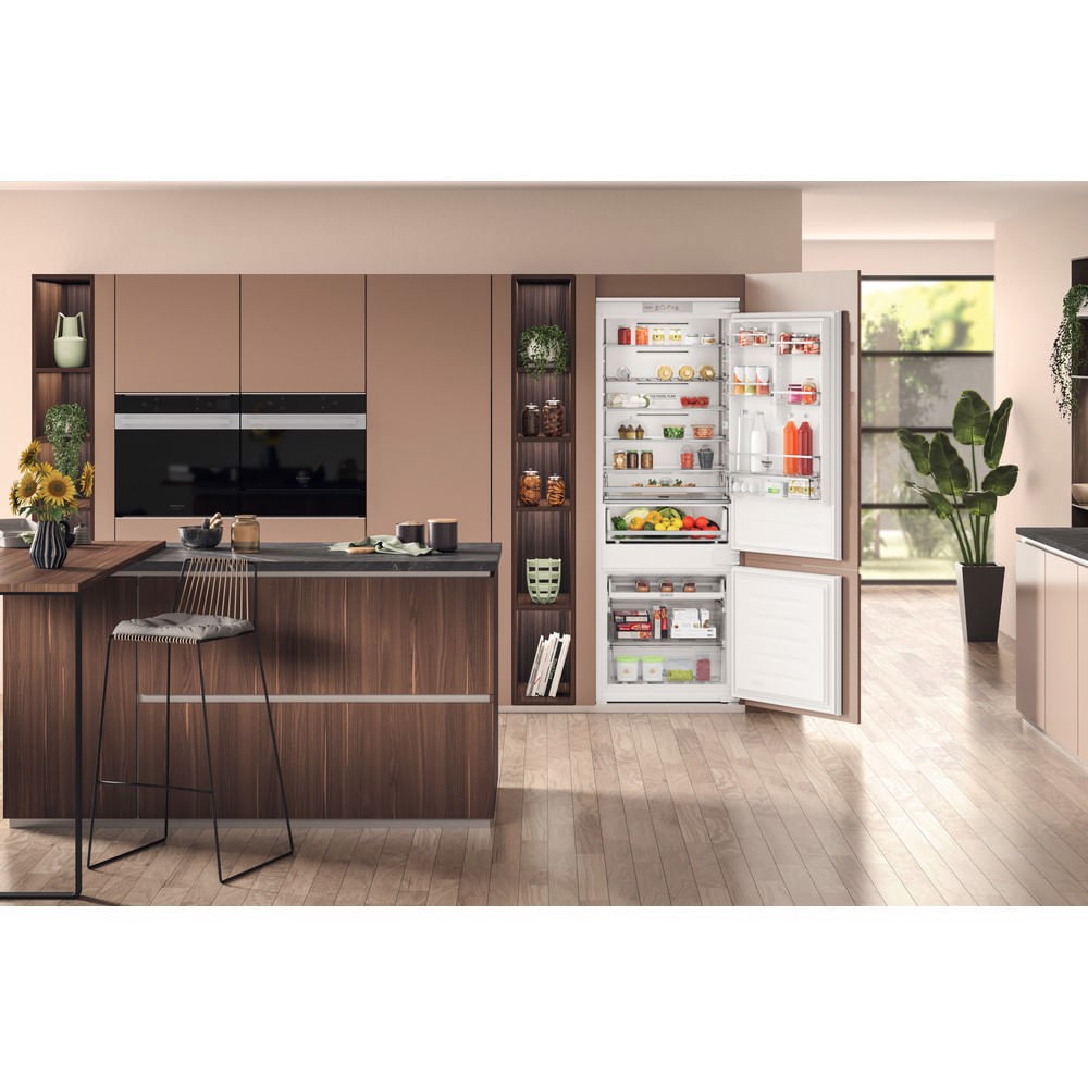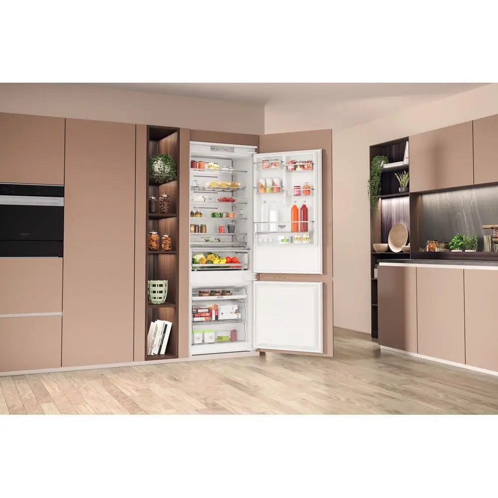 Caratteristiche di questo frigorifero combinato da incasso Hotpoint Ariston: modello alto e capiente, adatto per le esigenze di tutta la famiglia. Colore bianco. Ripiani in vetro, robusti ed eleganti al tempo stesso. Flusso d’aria regolare e uniforme all’interno dell'elettrodomestico, per una ventilazione potenziata. Comodo porta-bottiglie per conservare le bottiglie con sicurezza.