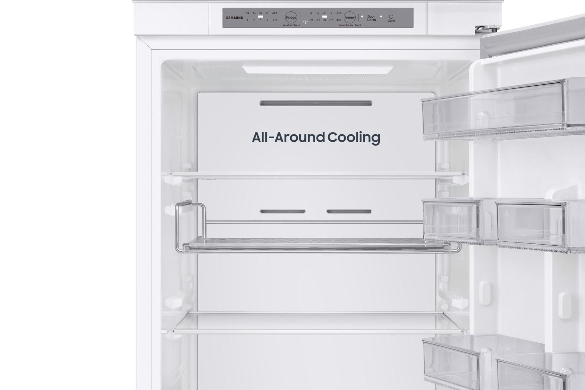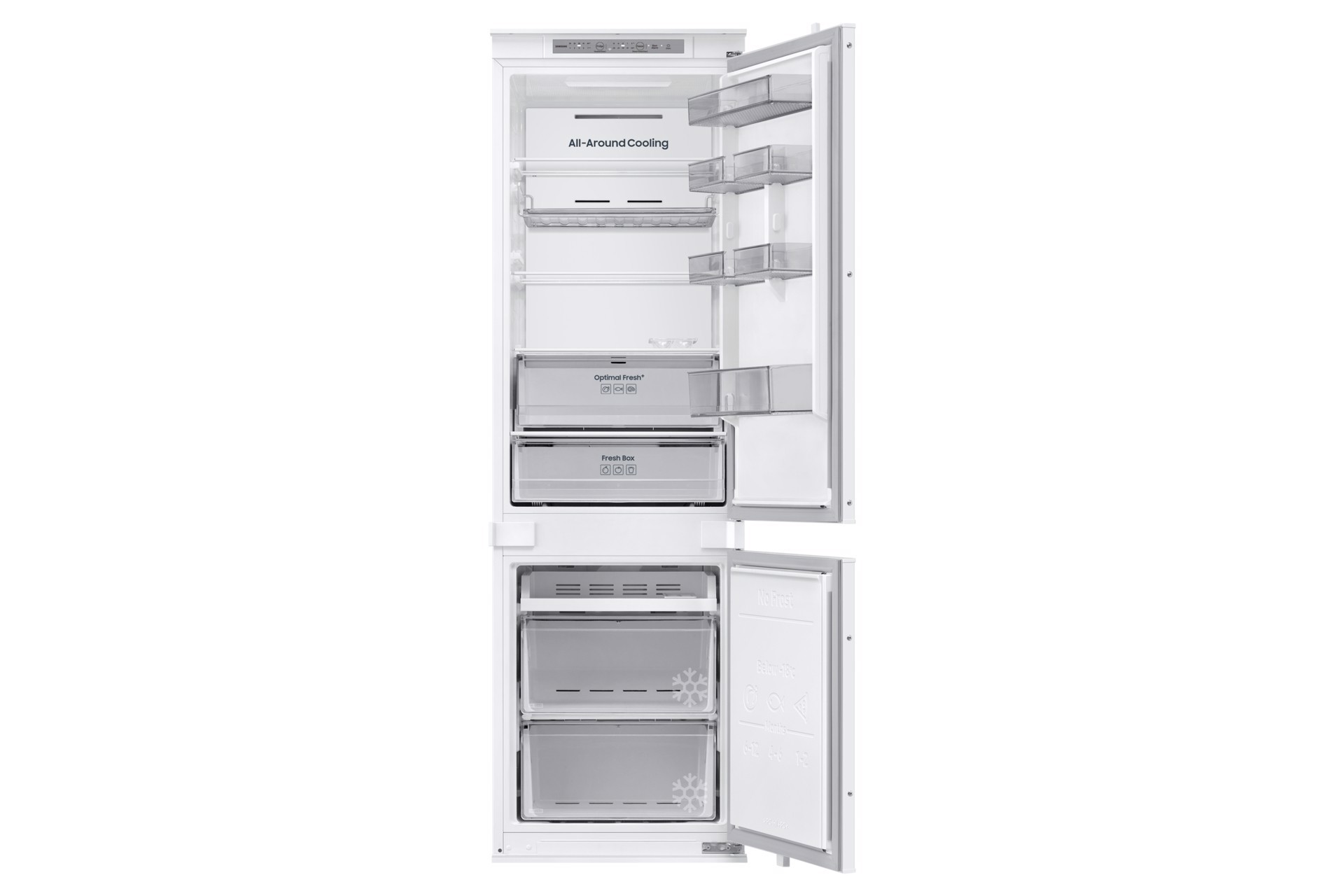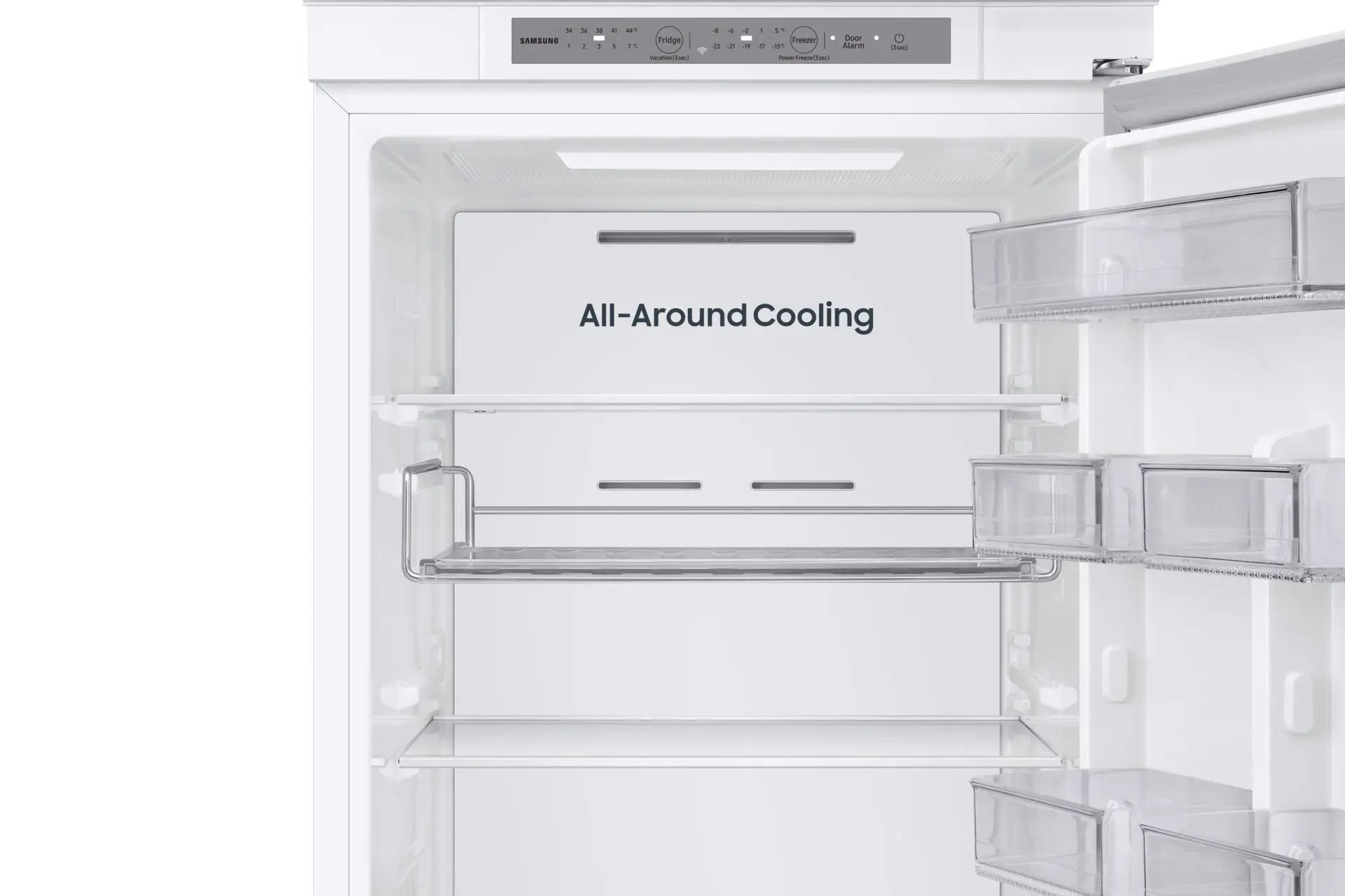 Assicurati che i tuoi alimenti siano adeguatamente refrigerati – in ogni zona del frigorifero. Il sistema All-Around Cooling garantisce un freddo uniforme in ogni zona del frigorifero. Controlla costantemente la temperatura e fa circolare laria fredda attraverso bocchette collocate in posizioni strategiche. In questo modo ogni ripiano viene raffreddato in modo ottimale e gli alimenti rimangono più freschi.