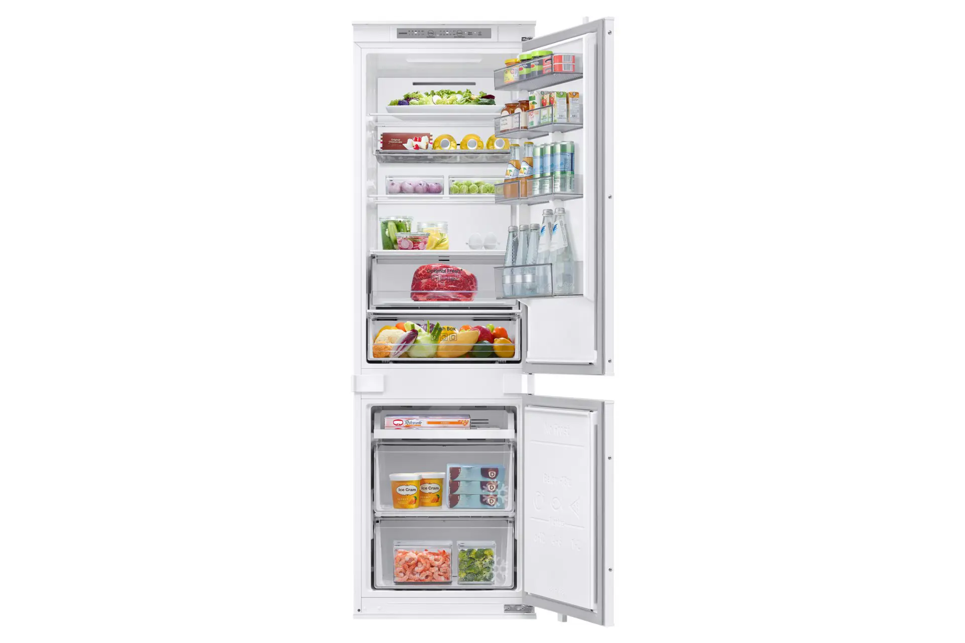 Il comparto Optimal Fresh + può essere utilizzato come cassetto unico o diviso in due zone con temperature diverse. Il lato sinistro è più freddo, per cui carne e pesce possono durare due volte più a lungo. Il lato destro è ideale per preservare la freschezza di frutta e verdura.