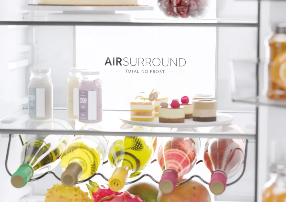 Con Haier Air Surround Fresher Tech, l'aria scorre all’interno del frigorifero in modo più omogeneo così da mantenere il gusto, la consistenza e la succosità degli alimenti fino al 99%* dopo 7 giorni come il giorno 1. Infatti, grazie alle speciali uscite laterali sulla colonna, questo sistema distribuisce l'aria fredda così da avvolgere il cibo in tutta la cavità del frigorifero ed evitando il flusso diretto sullo stesso, al fine di mantenerne la consistenza e prevenire l’asciugatura degli alimenti.