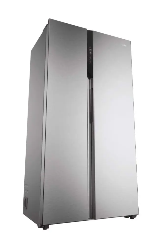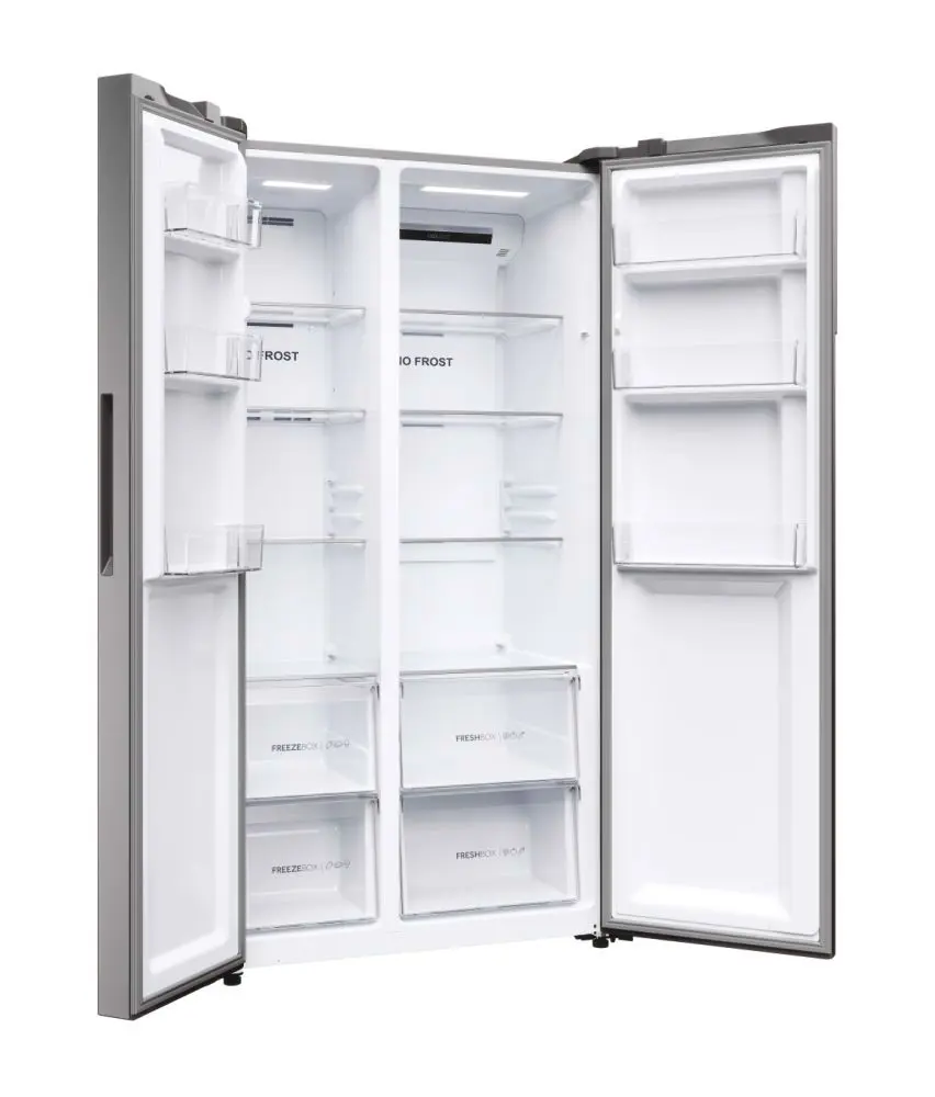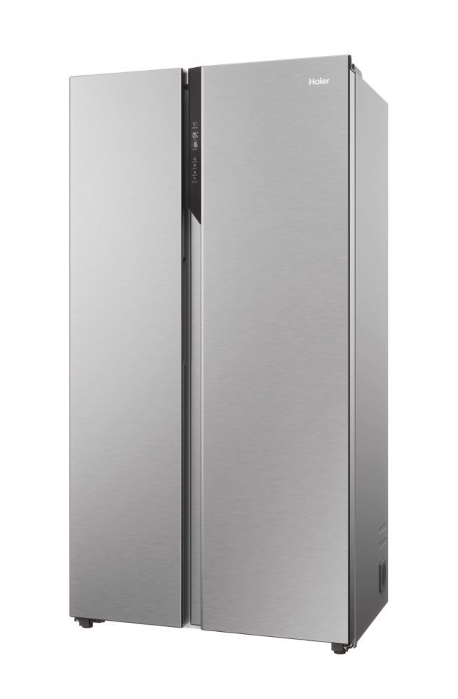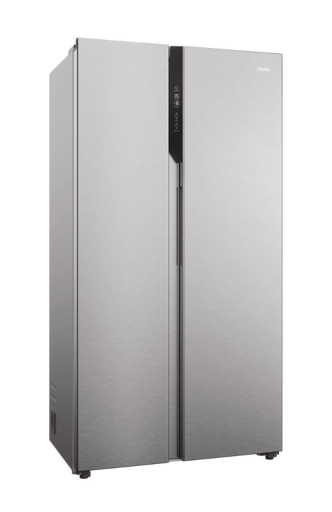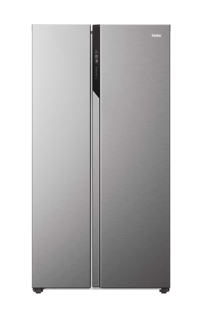 Haier SBS 90 Serie 5 HSR5918DNMP, Libera installazione, Porta americana, Platino, Acciaio inossidabile, Touch, Sulla porta, Vetro