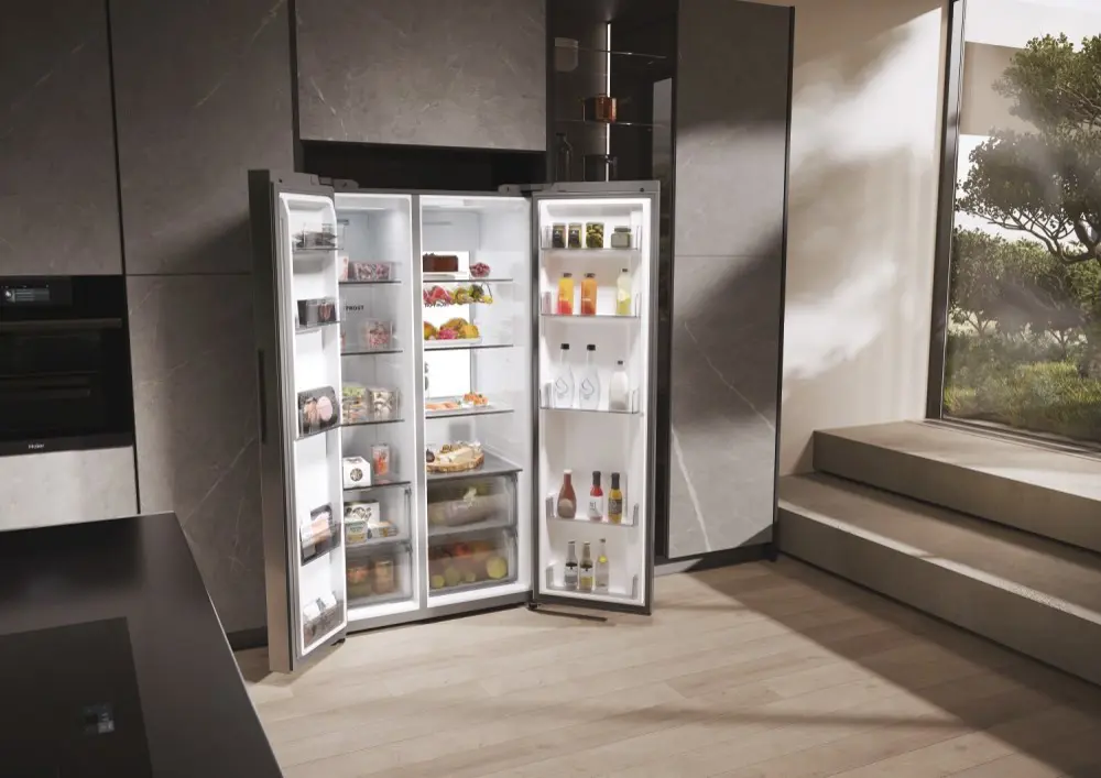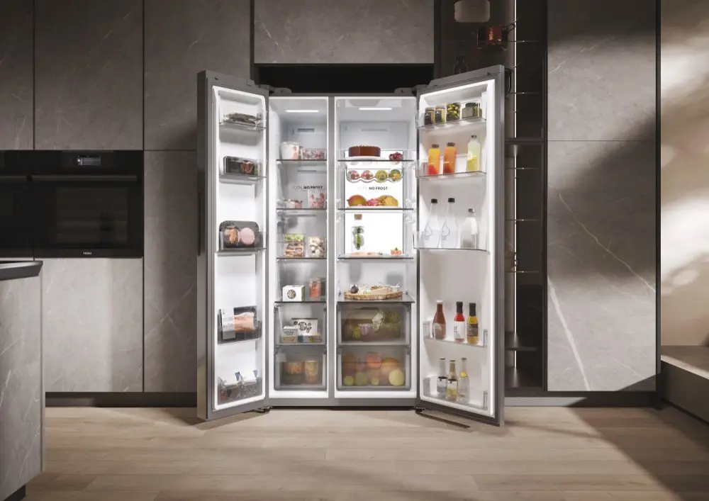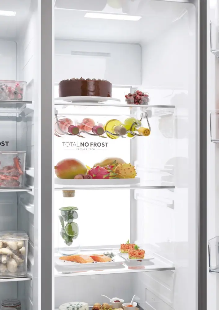 I frigoriferi Haier Side By Side 90 Serie 7 garantiscono la perfetta conservazione dei tuoi alimenti grazie a zone specializzate, tecnologia avanzata e altre soluzioni di raffreddamento e conservazione. Inoltre, grazie all'app hOn, all'intelligenza artificiale e alla connettività WiFi, offrono funzioni innovative che anticipano le tue esigenze di freschezza. Con una larghezza di 90 cm, offrono una grande capacità e un accesso agevole sia al frigorifero che al congelatore. L'ampio spazio di consente di conservare una grande quantità di cibo mantenendo gli alimenti ordinati e organizzati. Sono dotati di un design elegante che può adattarsi a qualsiasi stile di cucina e di un'interfaccia elettronica intelligente per impostare la temperatura perfetta in base alle tue necessità.