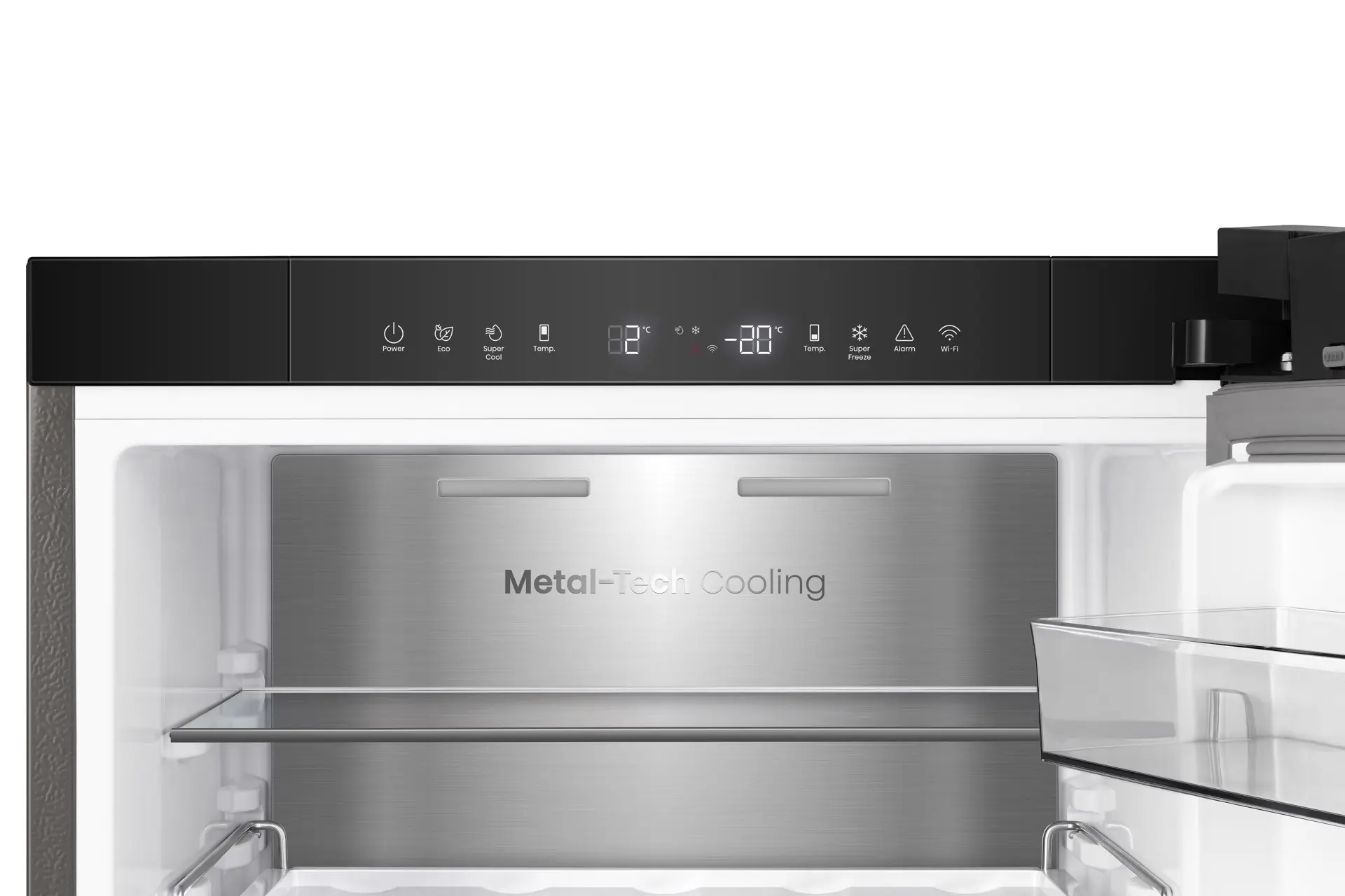 | Tecnologie Hisense (conservazione degli alimenti) | ConnectLife, Door Alarm, Flexi Hinge, Free Combination, Kitchen Fit Desgin, LED Display, Large Fruit & Vegetables Crisper, Metal Glide Drawers, Metal-Tech Cooling, Moisture Fresh Crisper, No Frost System, Soft LED Lighting, Super fast freeze, Total No Frost, Touch electronic control |