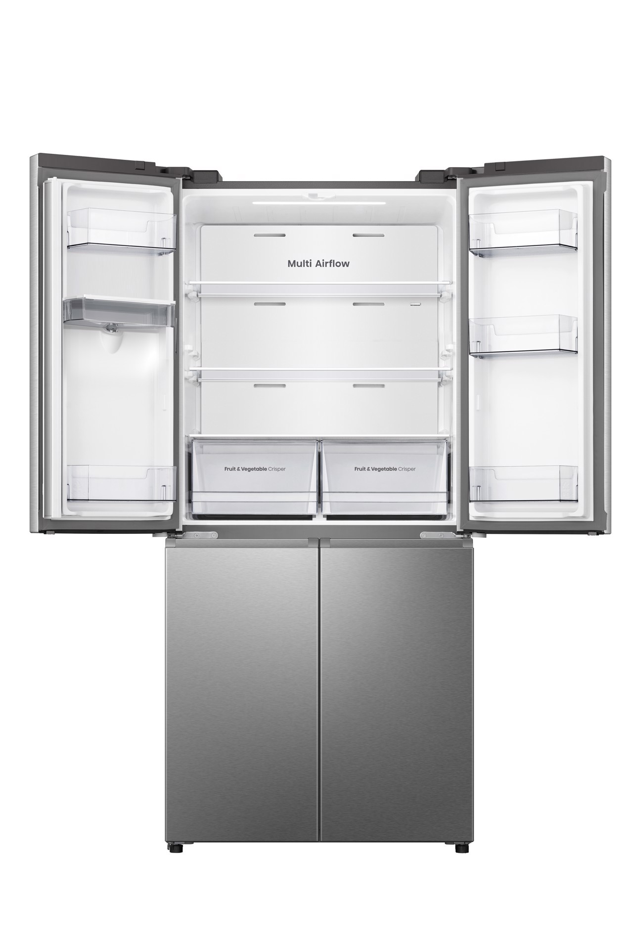 Hisense RQ5P470SMIE. Capacità netta totale: 482 L. Cerniera porta: Sinistra. Emissione acustica: 37 dB. Capacità netta frigorifero: 303 L, No Frost (frigorifero), Luce interna, Numero di cassetti per verdura: 2. Capacità netta congelatore: 179 L, Capacità di congelamento: 8 kg/24h, No Frost (congelatore). Compartimento zona fresca. Classe efficienza energetica: E, Consumo energetico annuo: 293 kWh. Colore del prodotto: Argento, Acciaio inox