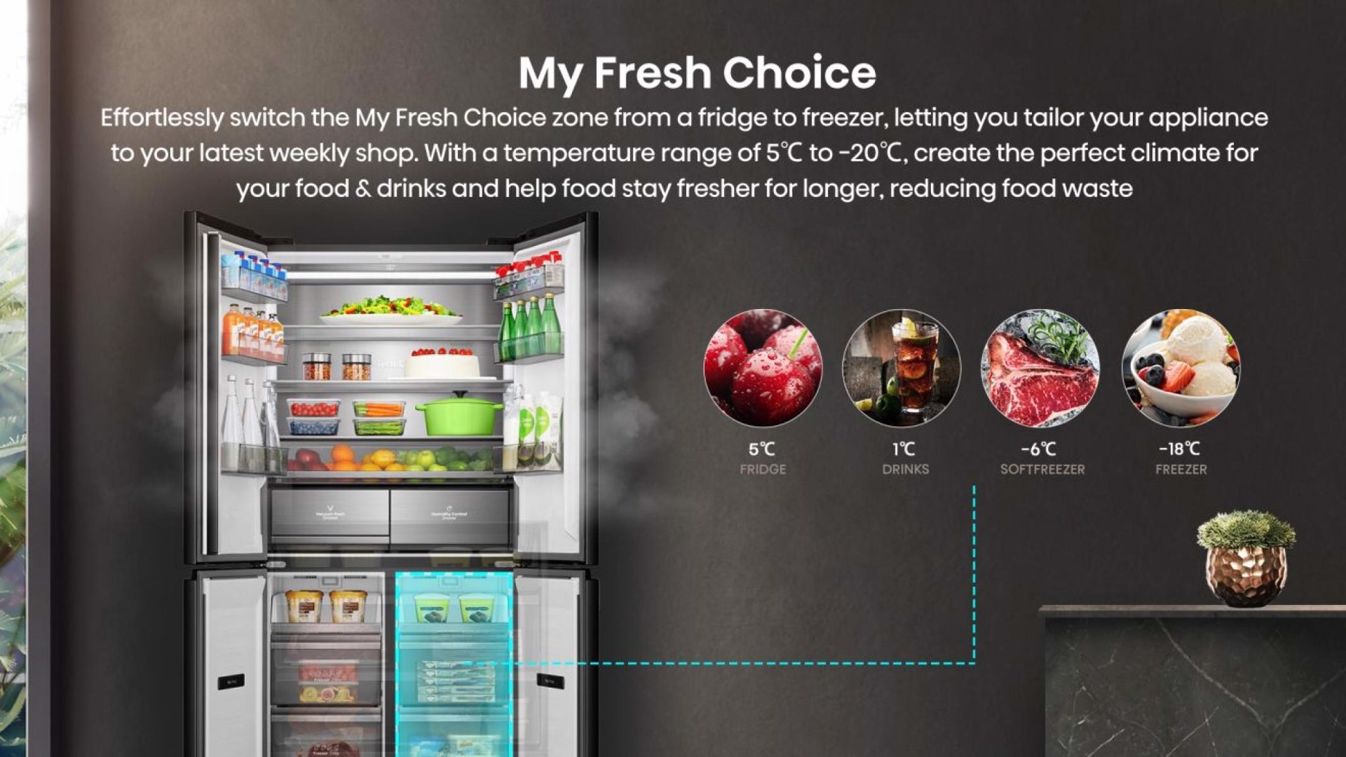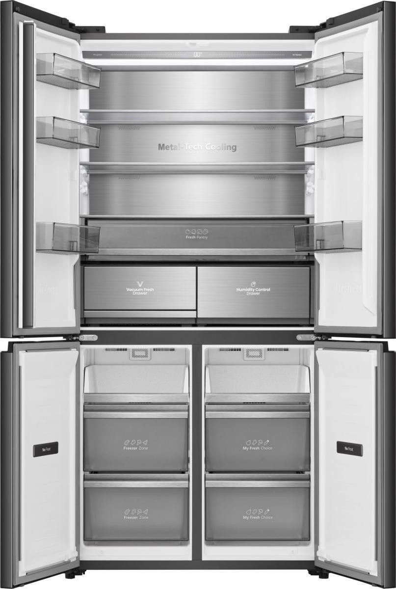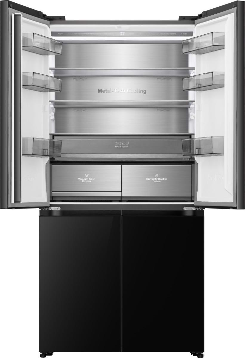 | Tecnologie Hisense (conservazione degli alimenti) | Antibacterial Guard, Flexi Hinge, Hi-NANO, Inverter Compressor, Kitchen Fit Desgin, Metal-Tech Cooling, Micro Vent Cooling Technology, Multi-Air Flow, My Fresh Choice (5°c), Premium Glass Door Design, PureFlat Design, Recessed Handle, Super Freeze, Total No Frost, Touch electronic control, Triple Zone Cooling, Underside Cooling System, Vacuum Fresh Drawer |